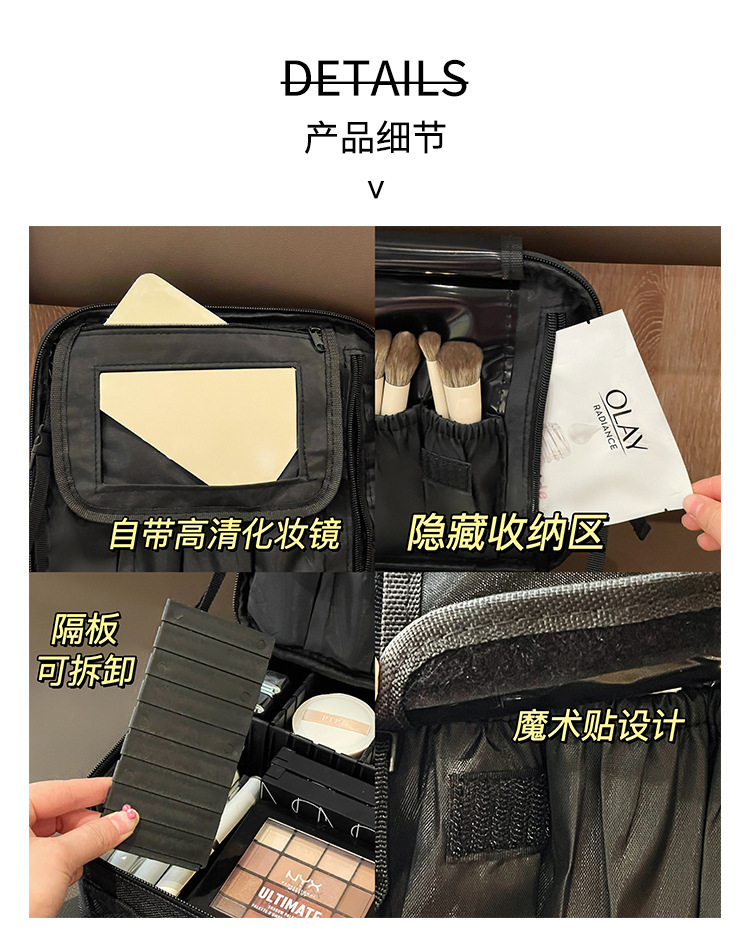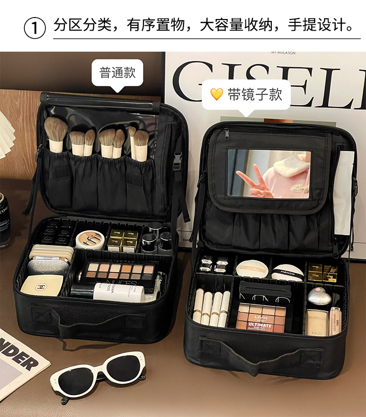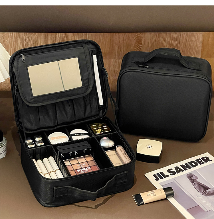 | Colores | Estuche de maquillaje negro,Estuche cosmético negro con espejo,Estuche de maquillaje rosa,Estuche de maquillaje rosa con espejo |