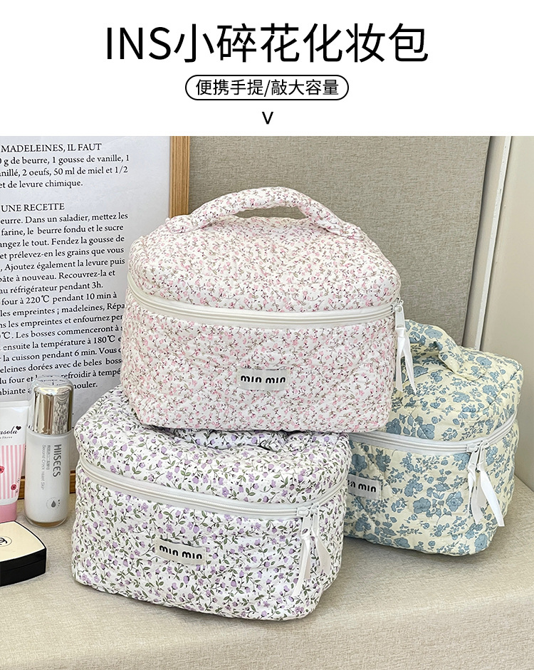| Color | Flores azules leche - bolsas de maquillaje, flores rosa leche - bolsas de maquillaje, flores blancas leche - bolsas de maquillaje |