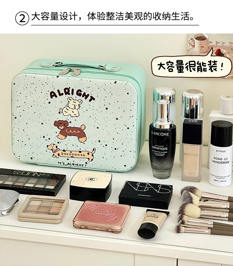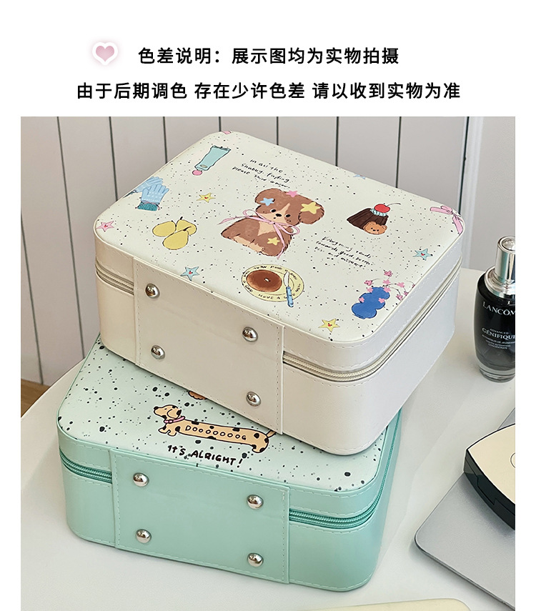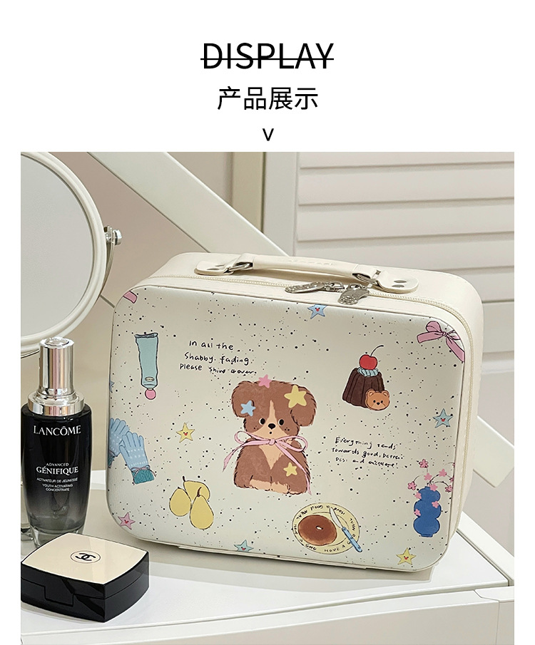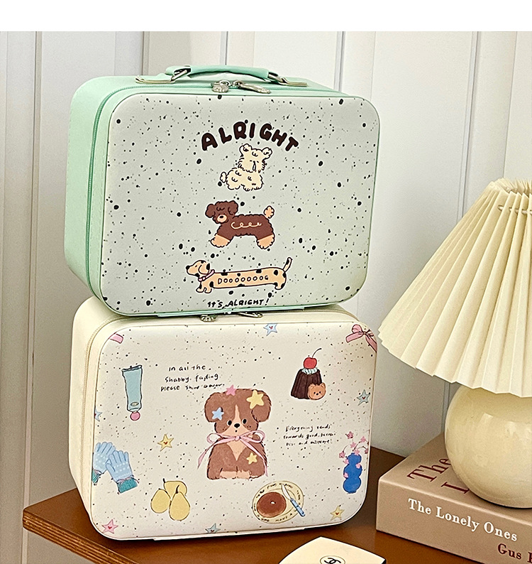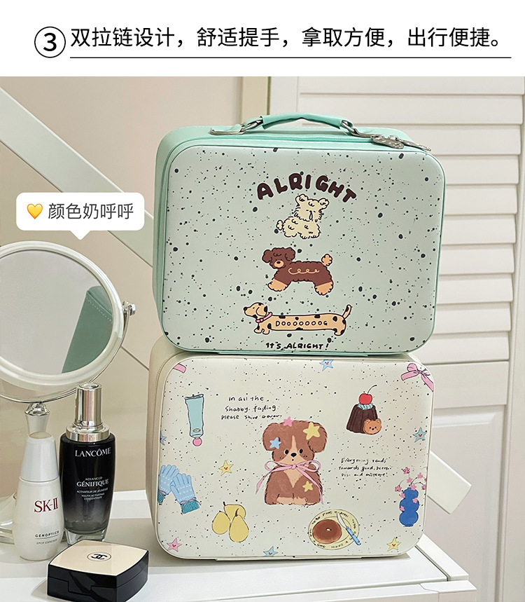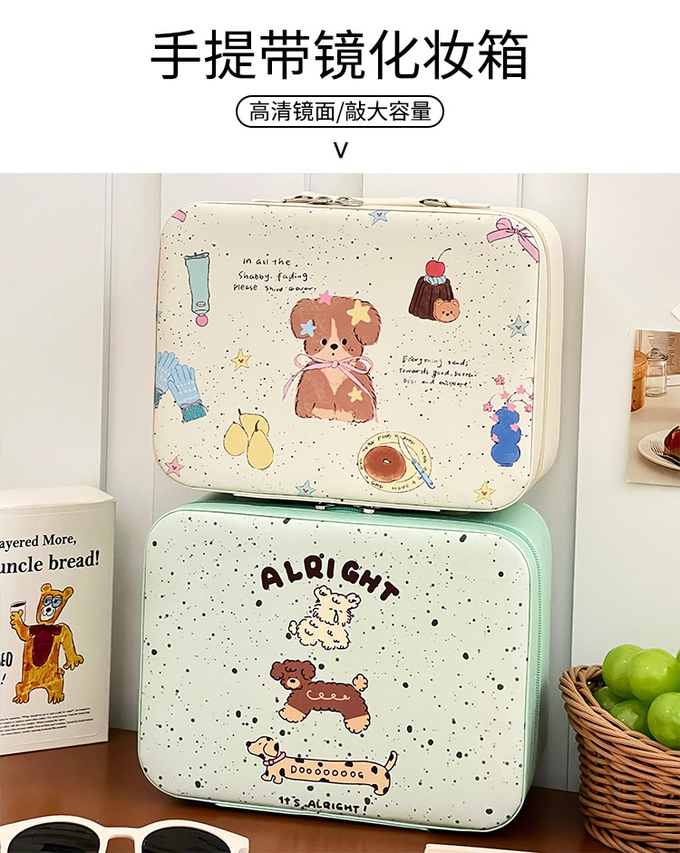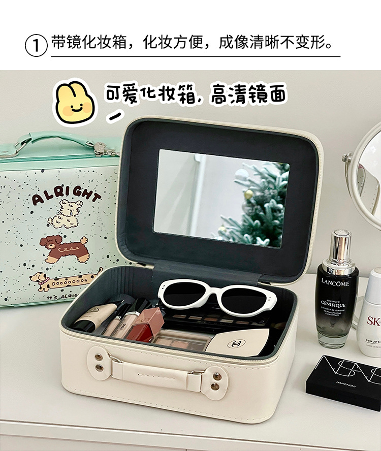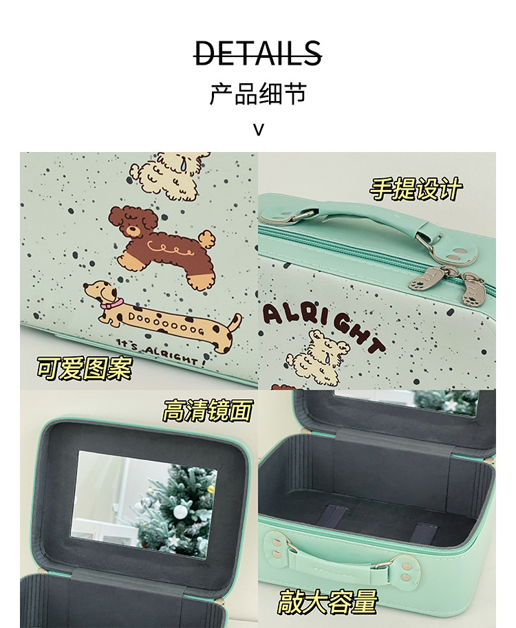 Original lindo cachorro maquillaje nuevo portátil de gran capacidad bolsa de almacenamiento de viaje con espejo bolsa de lavado de mano mujer