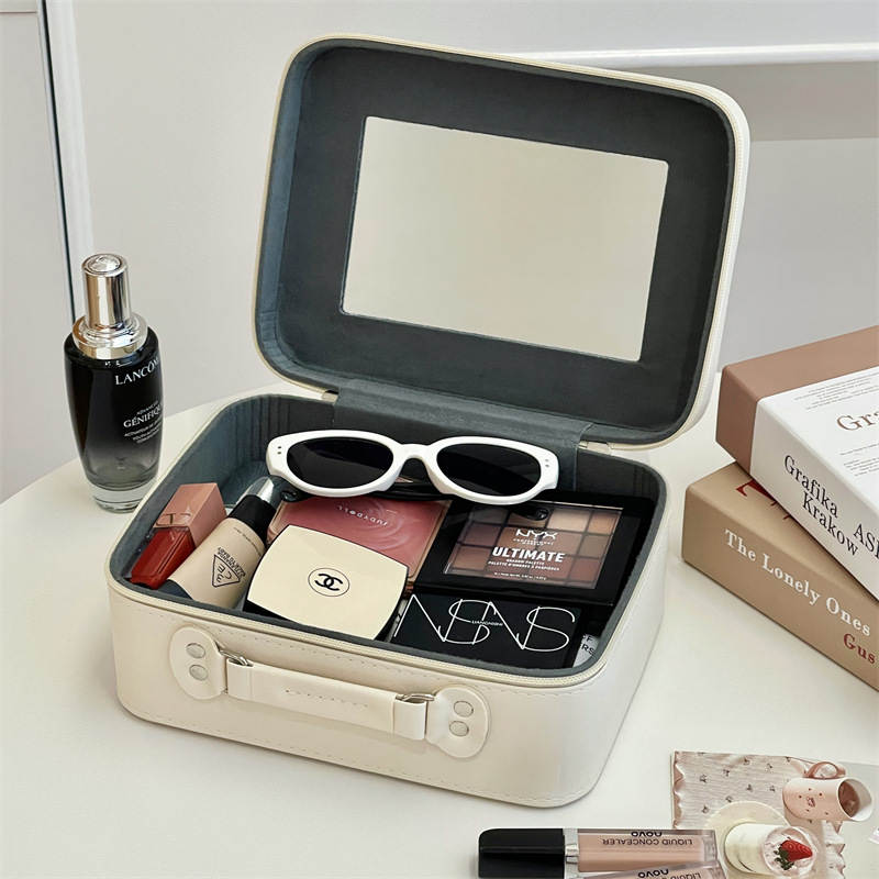 Espejo de pantalla completa bolsa de cosméticos portátil de las mujeres caso cosmético portátil de gran capacidad de cuidado de la piel bolsa de almacenamiento de cosméticos estilo coreano