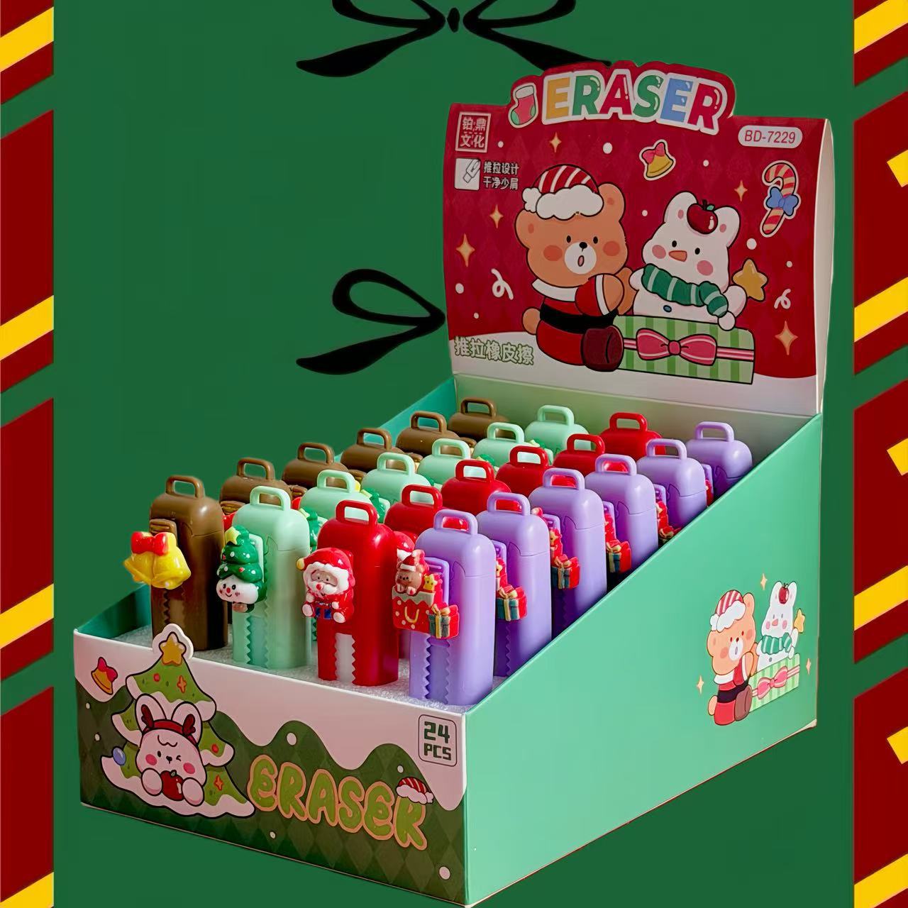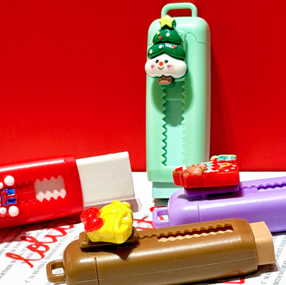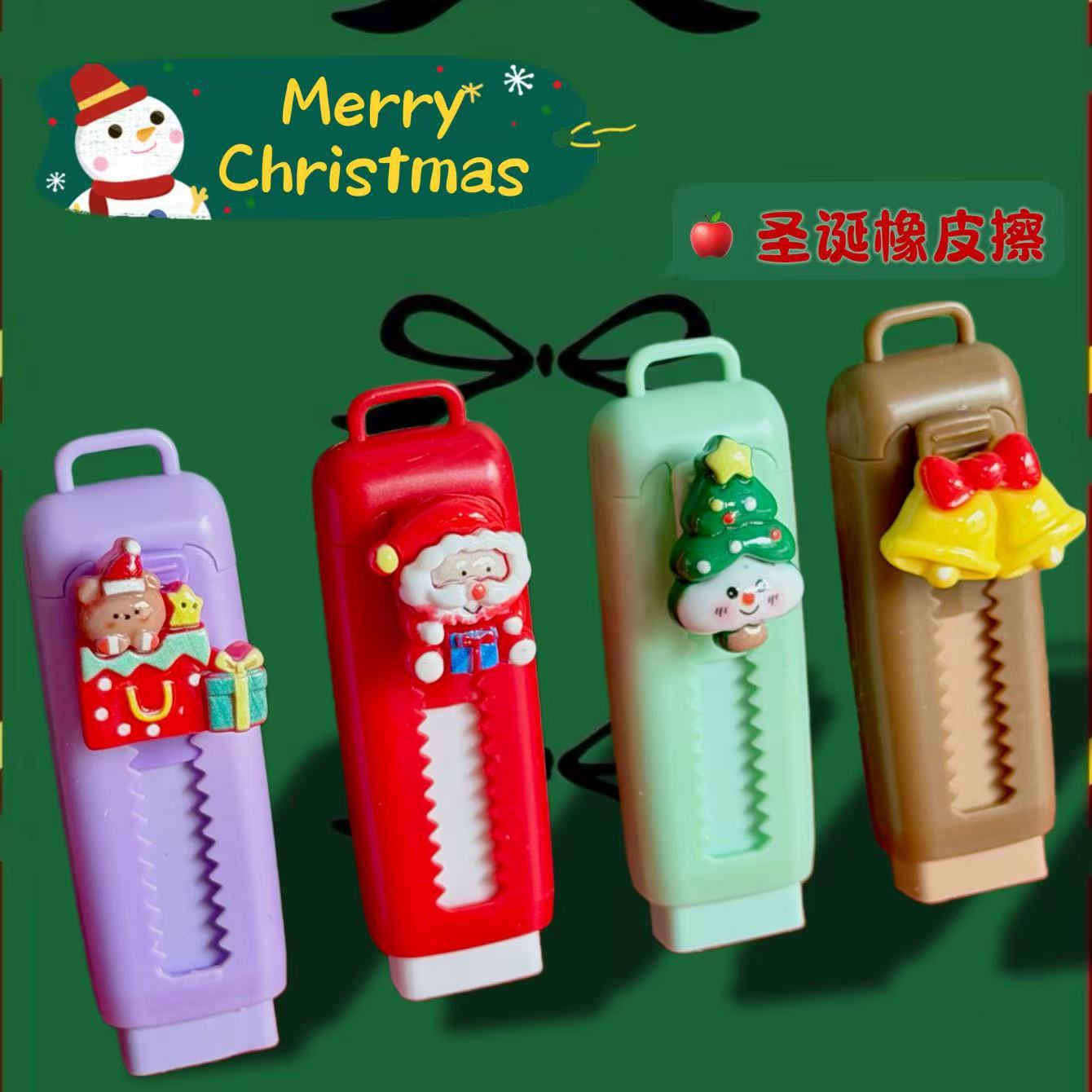 Nuevos borradores de navidad de empuje y tracción lindos de alta belleza campana regalo de goma estudiantes de papelería