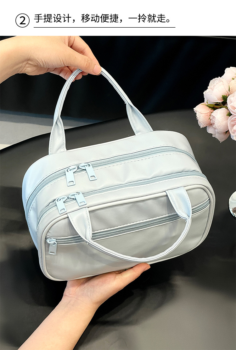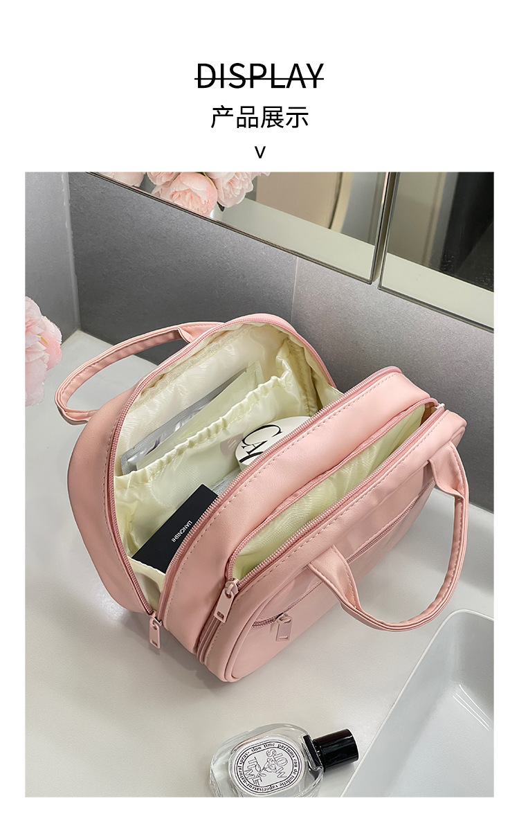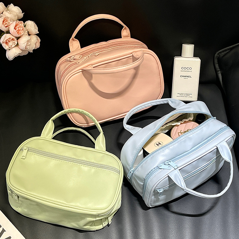 2024 nueva bolsa de maquillaje portátil PU de viaje portátil bolsa de almacenamiento de doble capa de gran capacidad bolsa de alta calidad