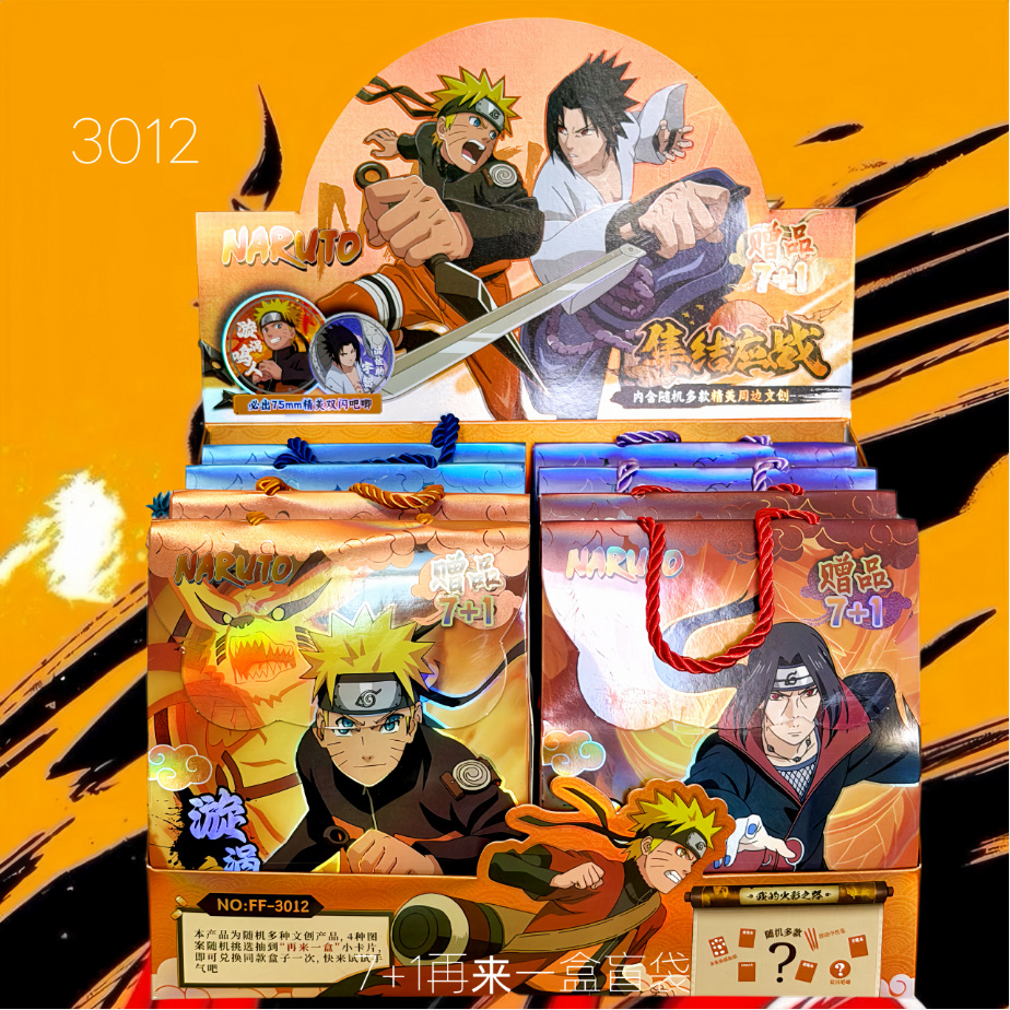 Animación de dibujos animados alrededor de 7 + 1 bolsas ciegas de papel de alto valor visual insignia libro bolígrafo neutro caja ciega portátil pequeño regalo