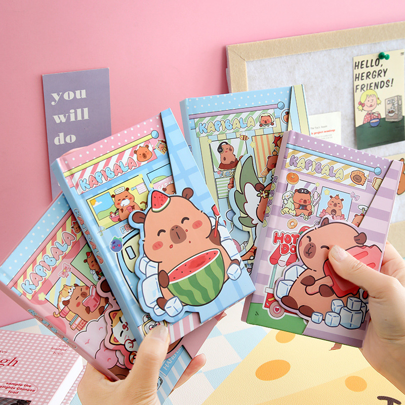 Capibara cuaderno magnético A6 caja dura cubierta dura cuaderno de notas adorable estudiantes de primaria aprendiendo papelería al por mayor