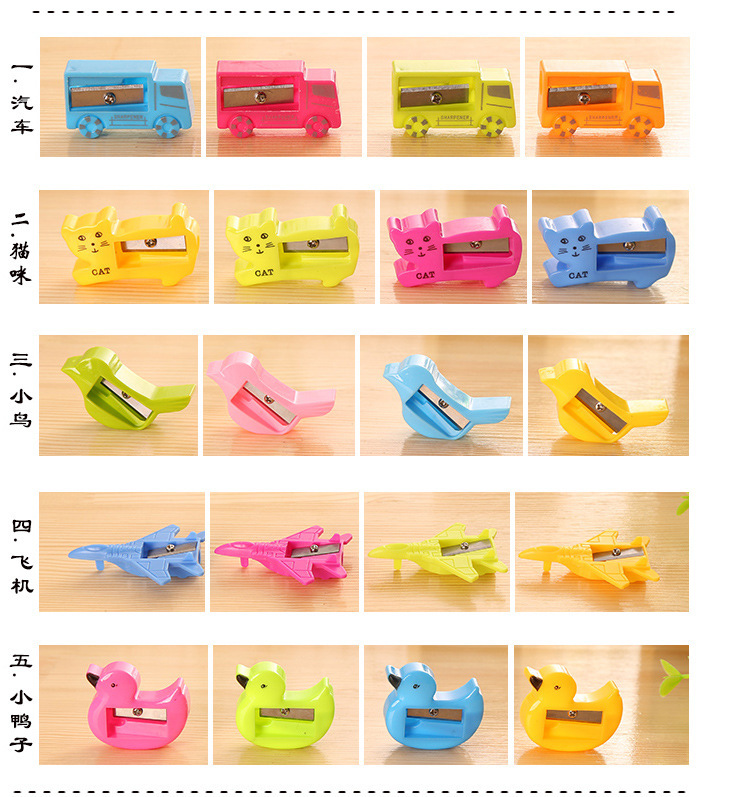 | Colores | Estilo de sacapuntas con forma de dibujos animados [aleatorio],Sacapuntas cuadrado pequeño [aleatorio] |