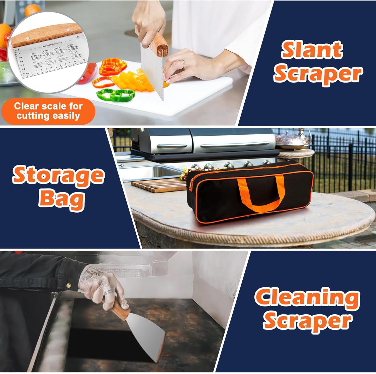 | Componentes | Guantes, cuchillos, pinzas, cepillos, tenedores, firmas, palas, otros |