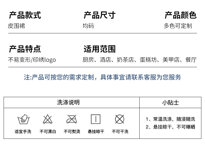 | Artículo No. | Correa H delantal de cuero impermeable (Y-98) |