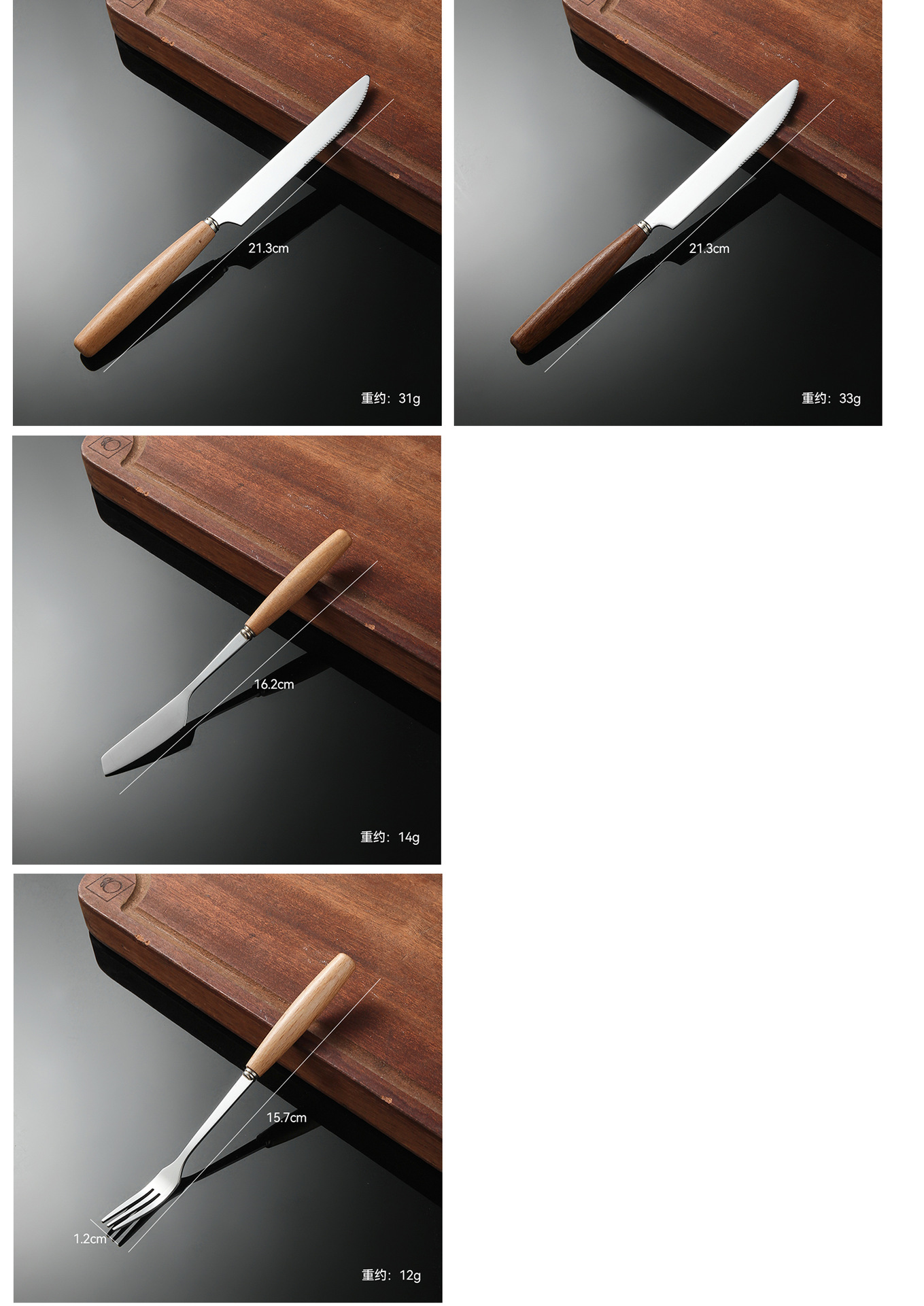 | Color | haya [cuchillo de mesa], haya [cuchillo de mesa 1], haya [cuchillo de mesa 2], haya [cuchillo de mesa 3], haya [cuchillo de mesa 2], haya [cuchillo de mesa 3], Madera de alas de pollo [horquilla No.1], Madera de alas de pollo [horquilla No.2], Madera de alas de pollo [horquilla de dos dientes], Madera de alas de pollo [horquilla de té], Madera de alas de pollo [ palillos largos], Madera de alas de pollo [ palillos cortos] |