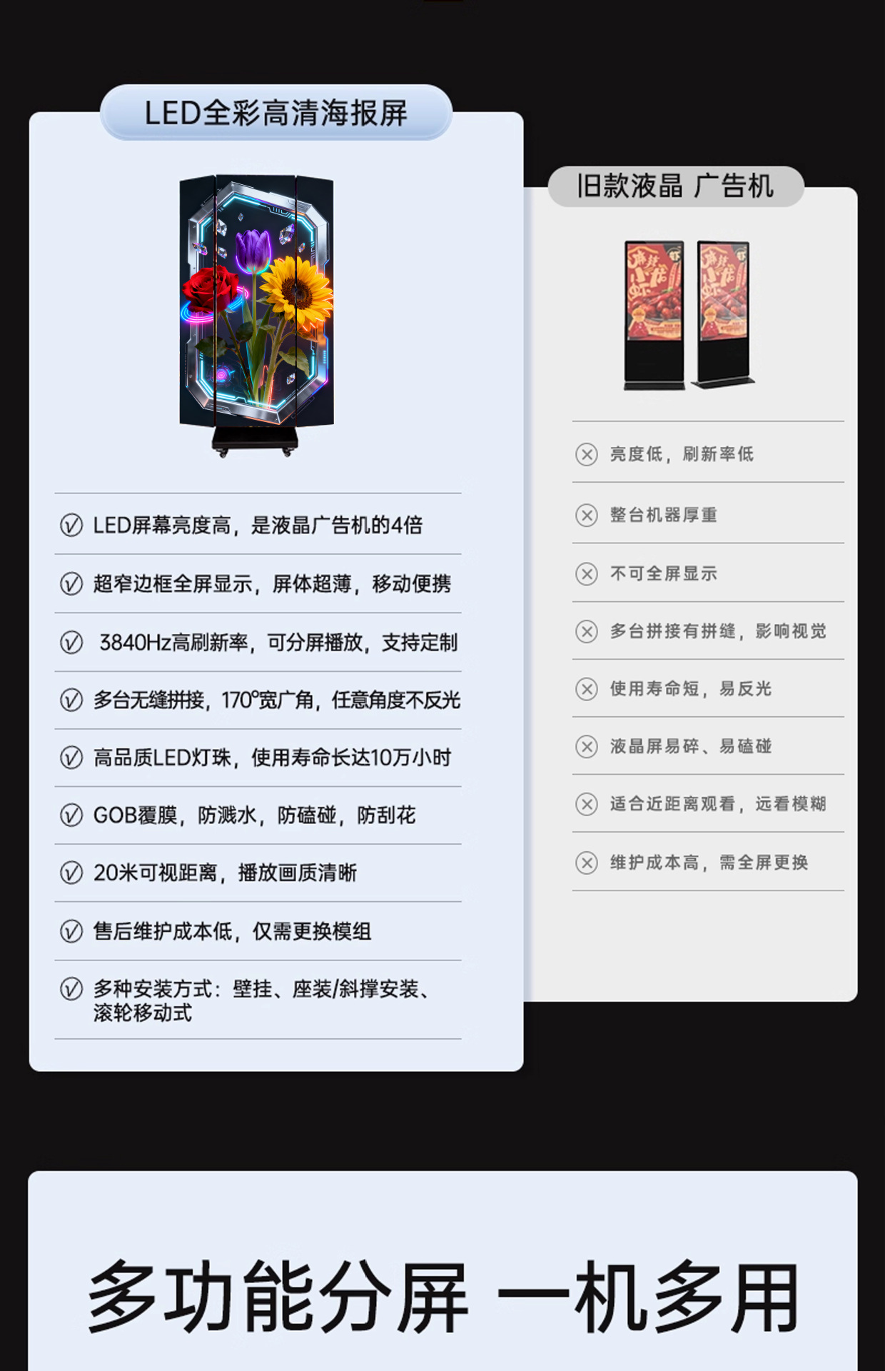 Pantalla de cartel LED plegable centro comercial al aire libre HD color completo vertical pantalla móvil de empalme pantalla led