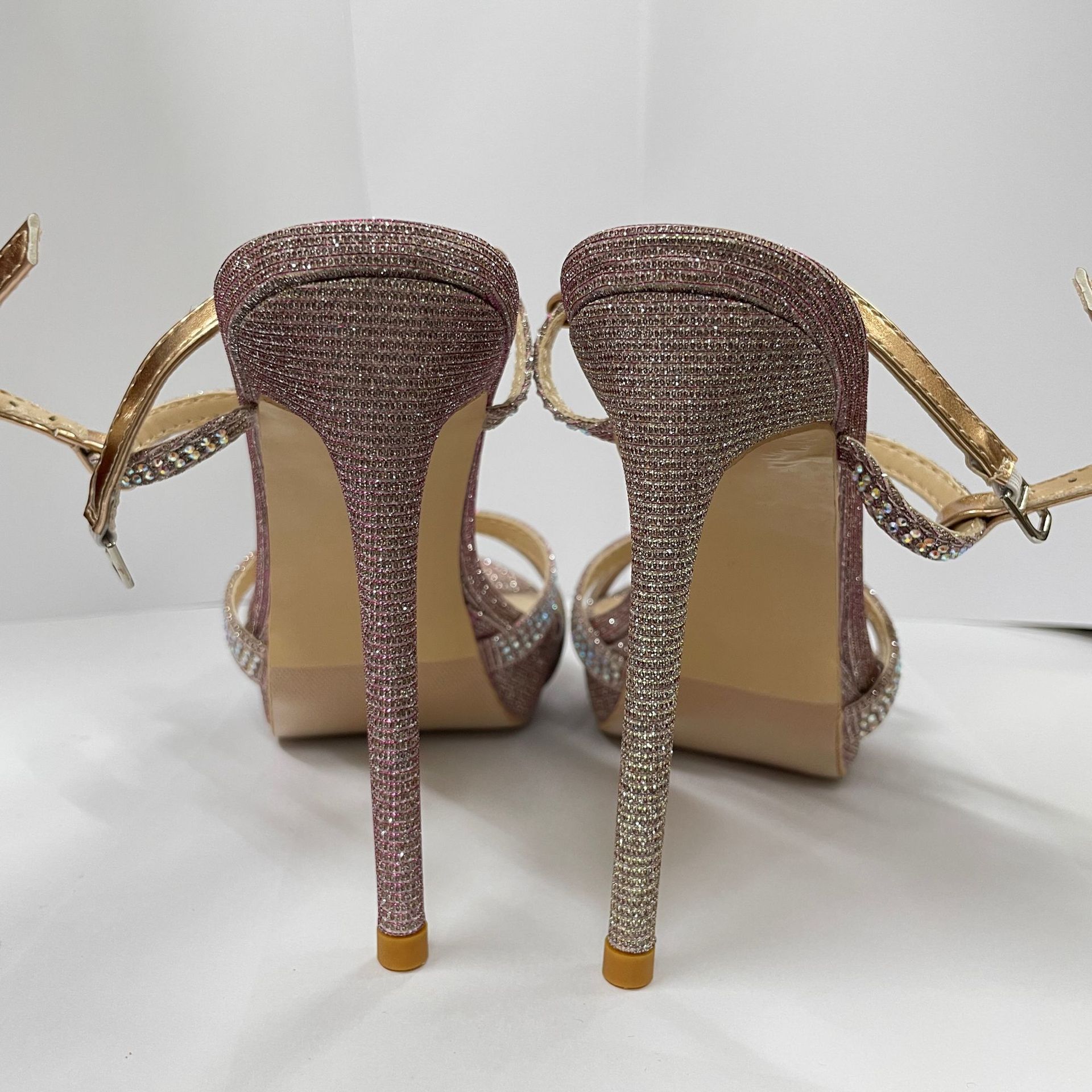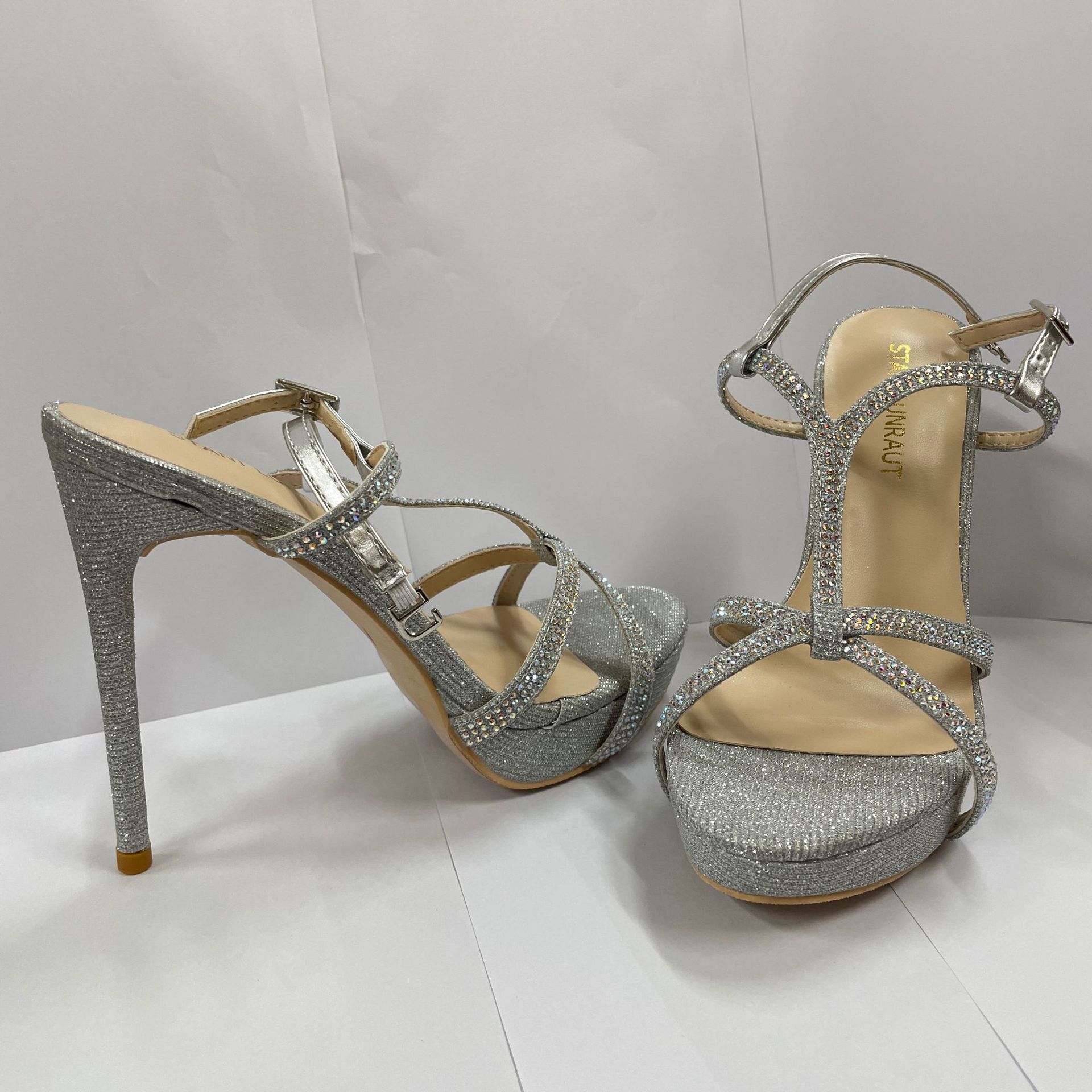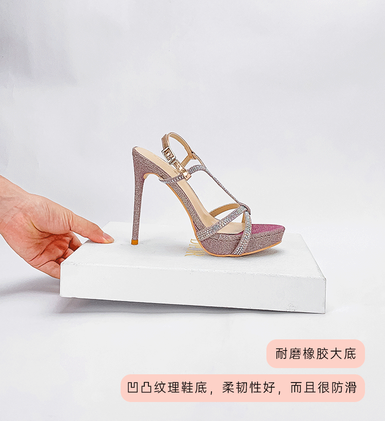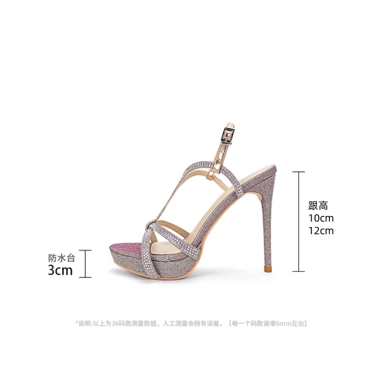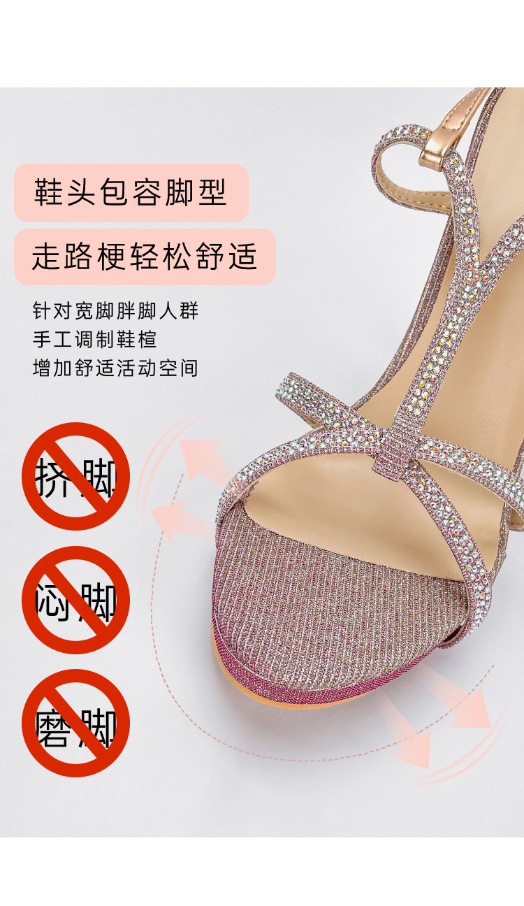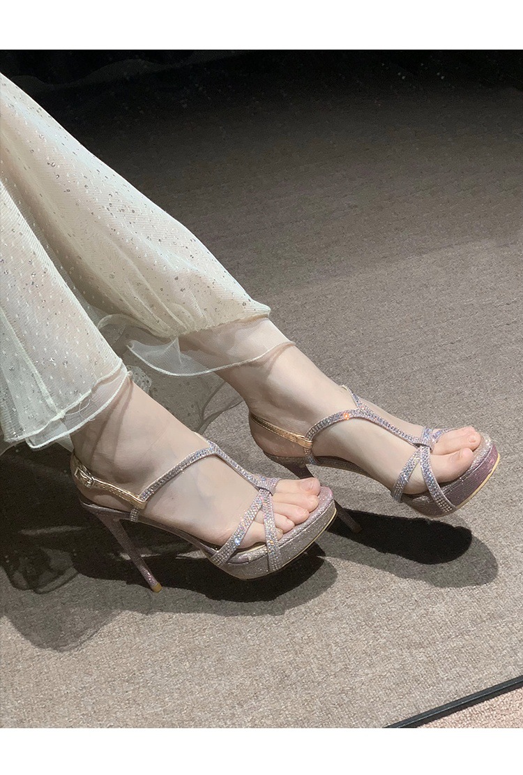 Sandalias de Tacón Alto con Punta en Pico y Parte Superior Brillante de Moda Europea y Americana para el Verano 2025, con Pedrería para Fiestas y Bodas