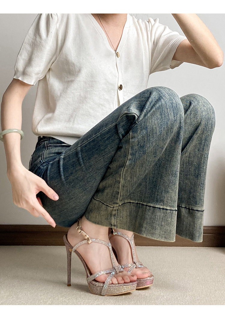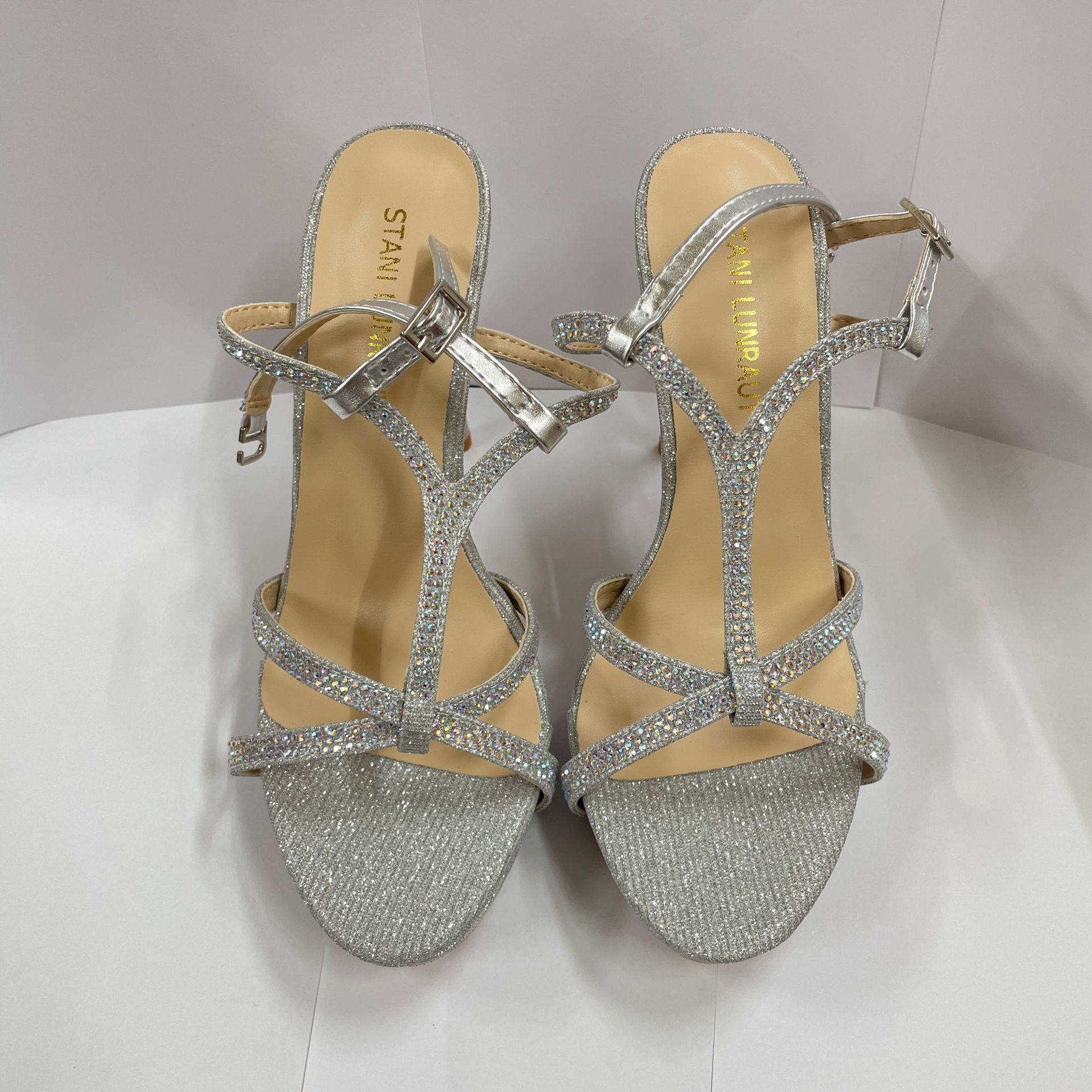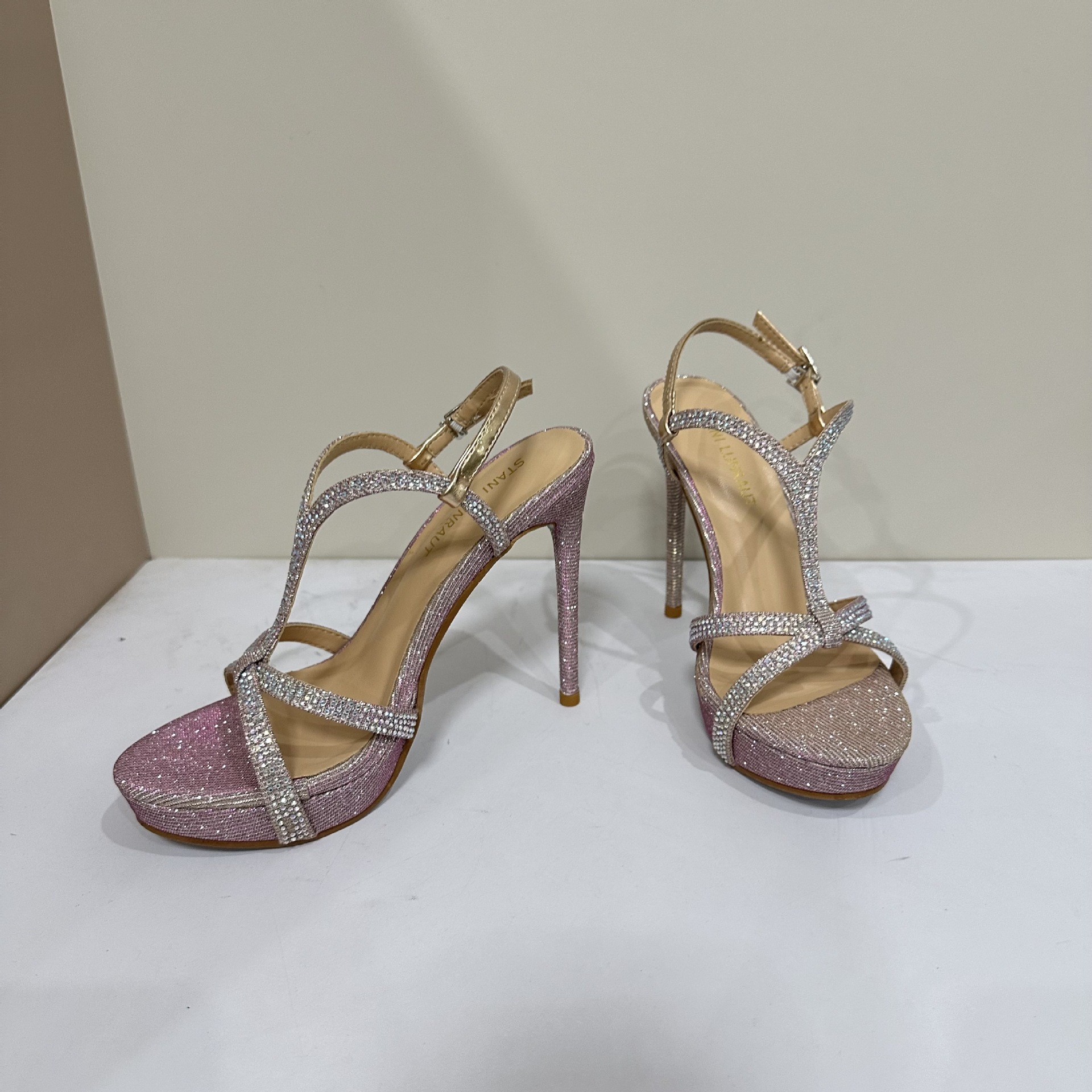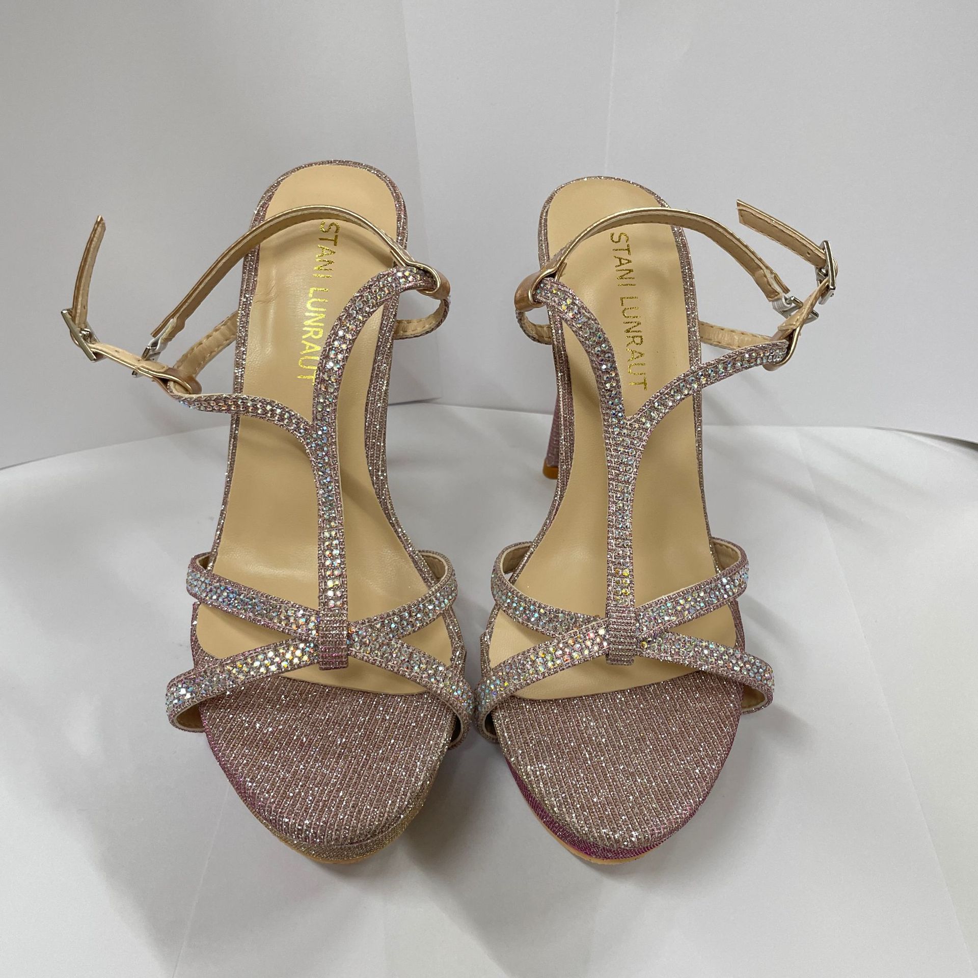Sandalias de Tacón Alto con Punta en Pico y Parte Superior Brillante de Moda Europea y Americana para el Verano 2025, con Pedrería para Fiestas y Bodas