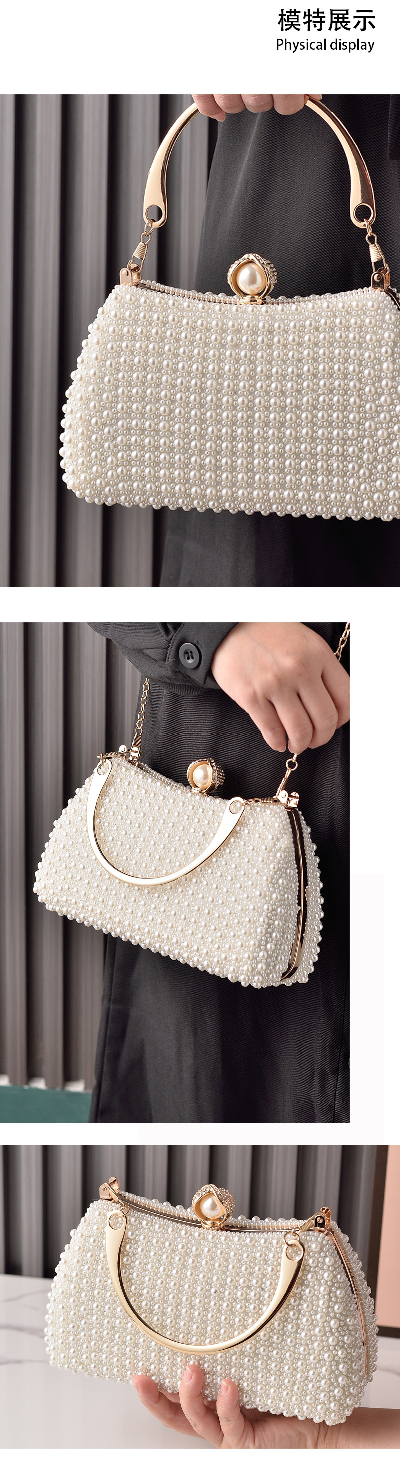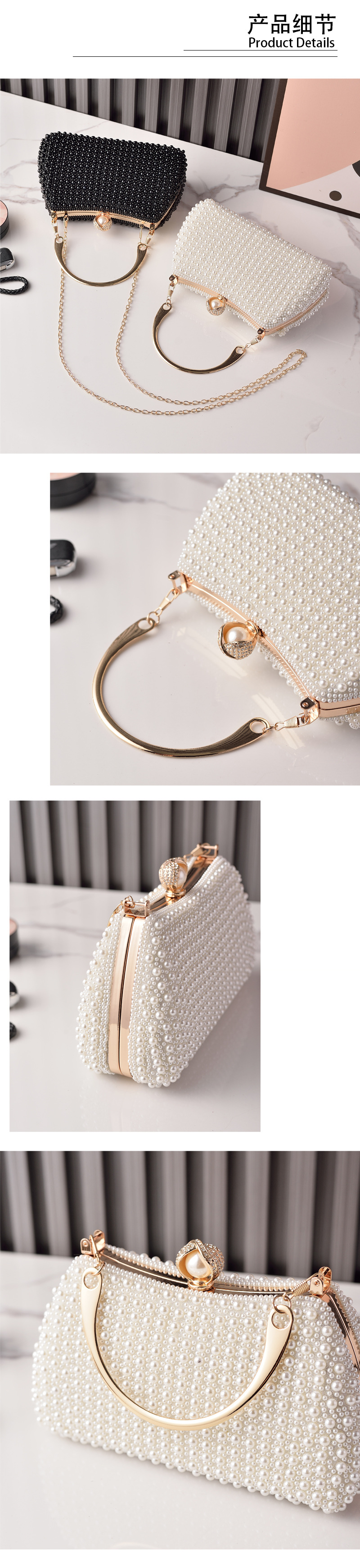 Venta caliente transfronteriza nuevos bolsos de perlas paquete de boda de moda europea y americana bolso de embrague cheongsam blanco retro ventas directas de fábrica