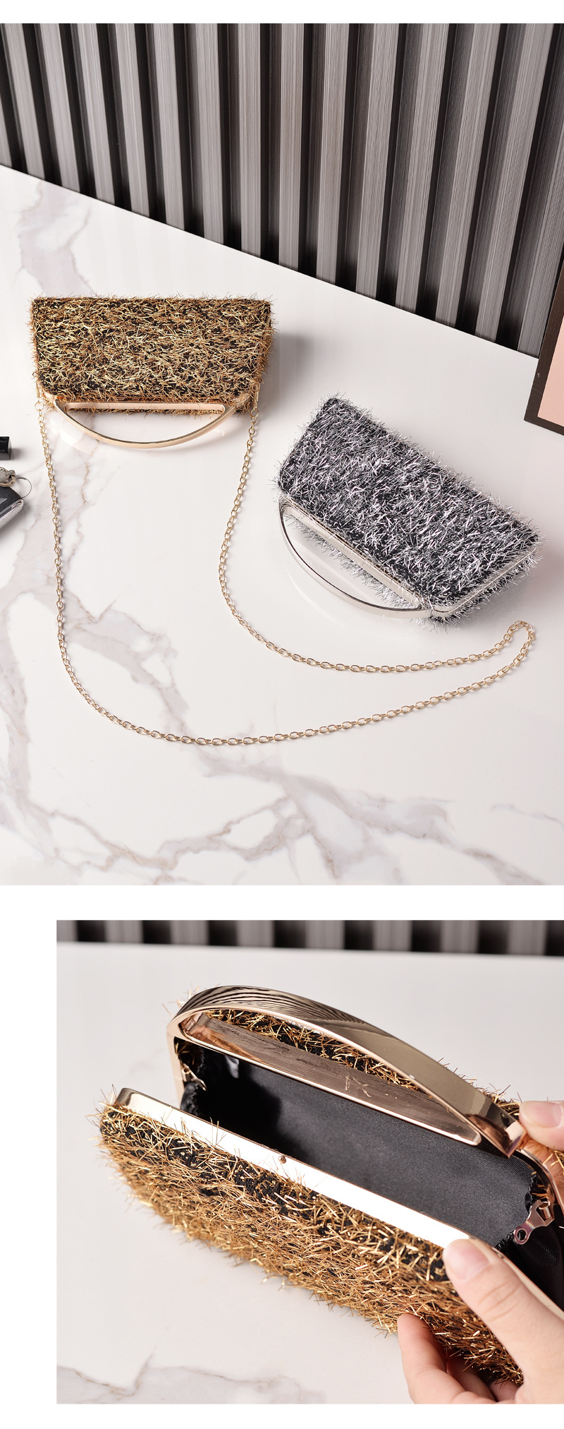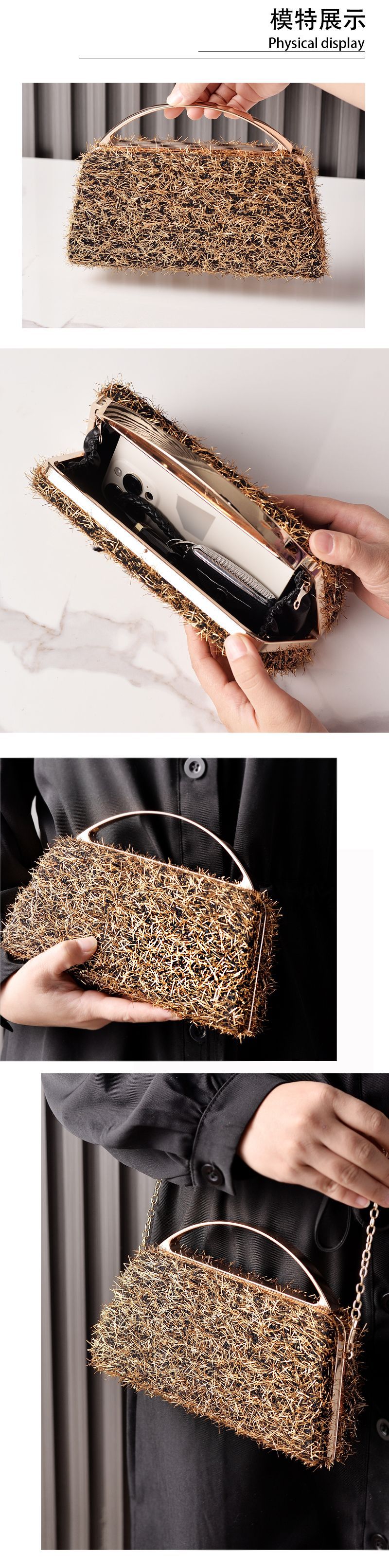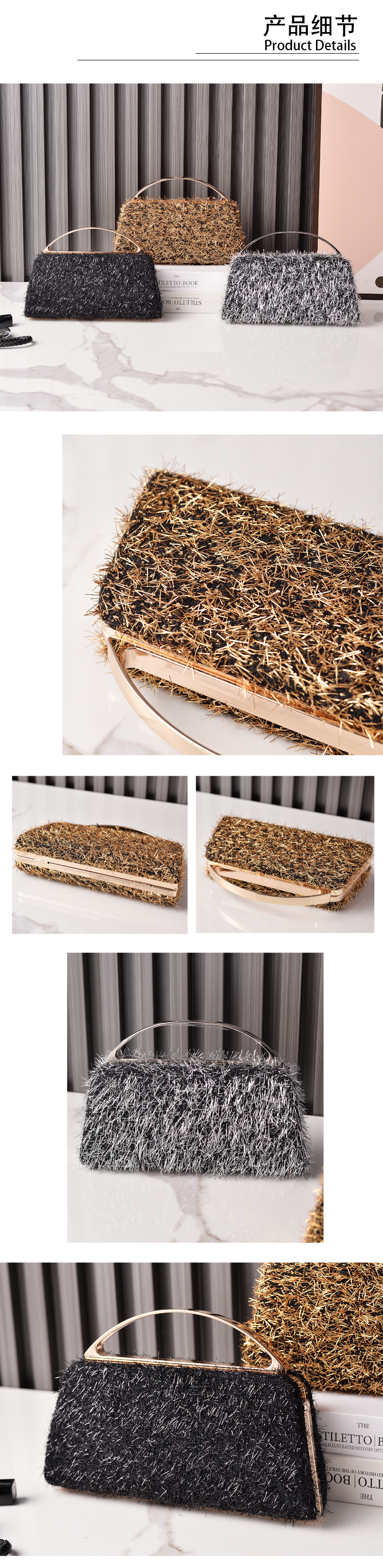 Bolso de cena dorado con borlas de nuevo estilo transfronterizo, bolso de fiesta portátil, bolso de novia de boda de moda europea y americana, venta directa de fábrica