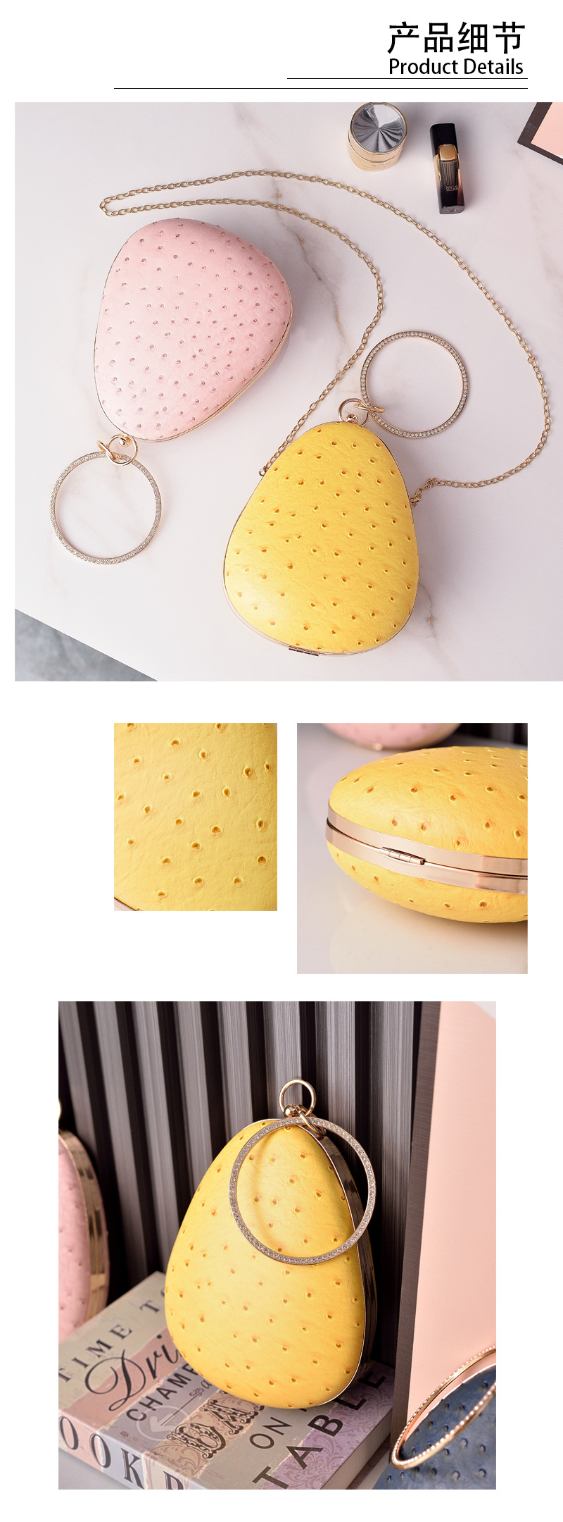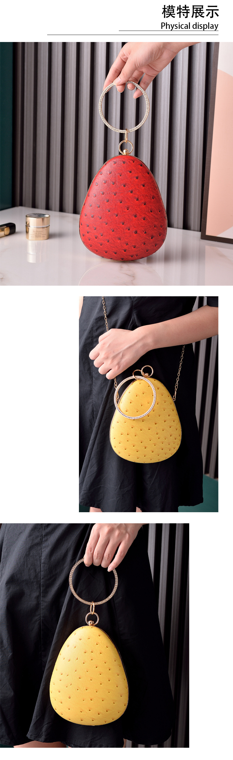 2023 nuevo avestruz PU especial bolso de mujer Lindo bolso de cadena en forma de fresa bolso de moda europeo y americano comercio electrónico transfronterizo