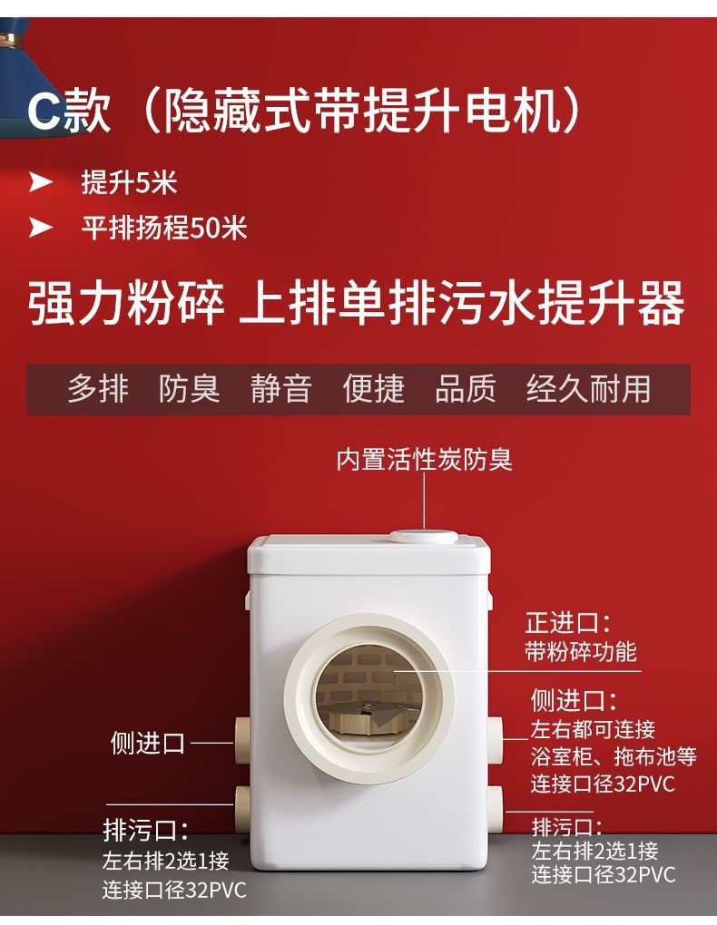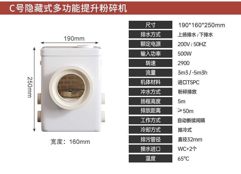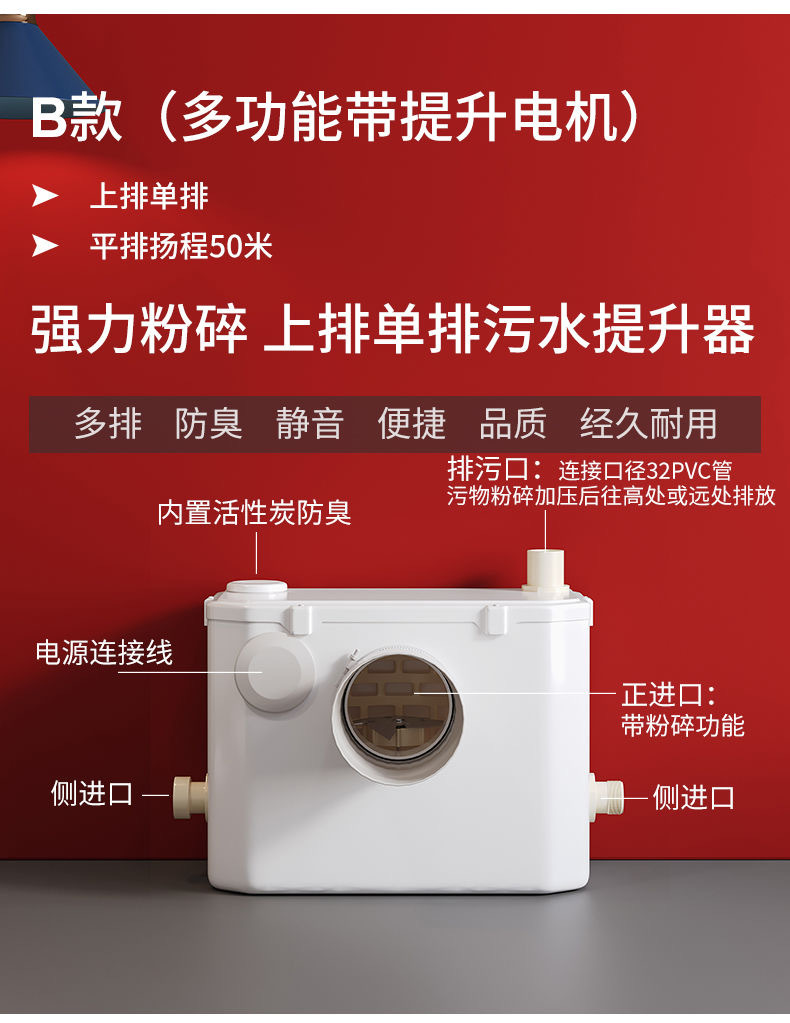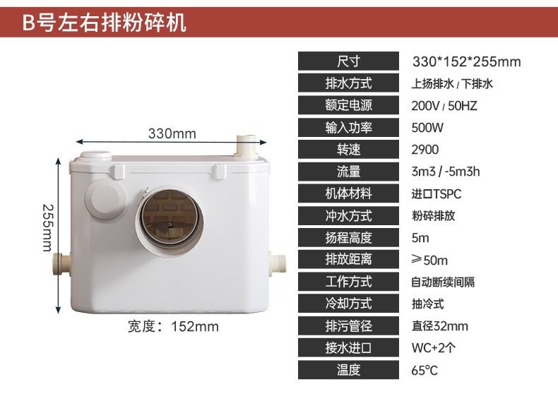 | Especificaciones | Inodoro tipo A + motor A 500W, inodoro tipo B + motor B 500W, inodoro tipo C + motor C 500W, motor A 500W |