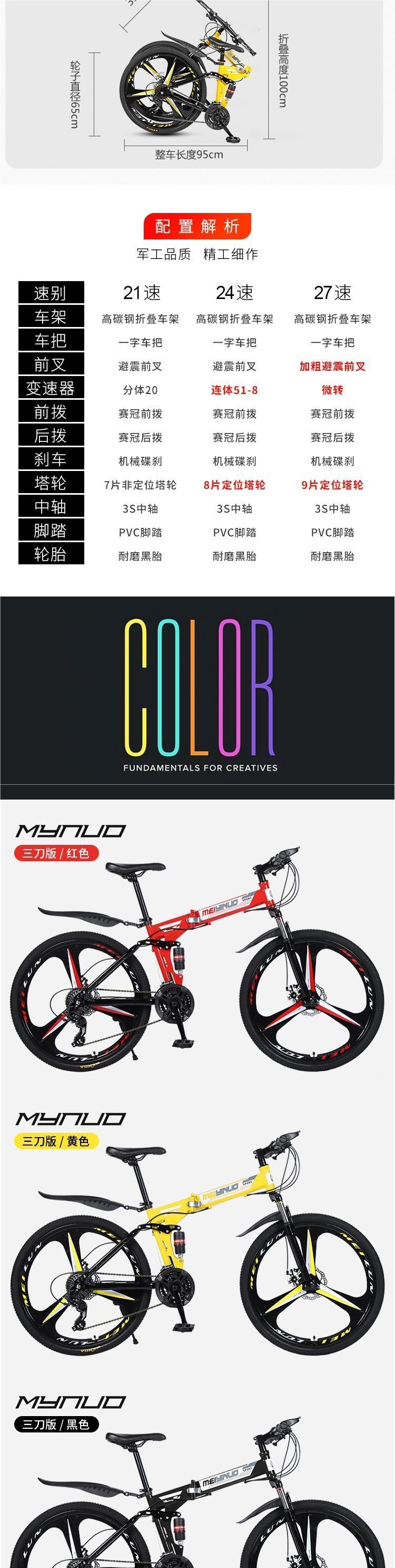 | Tamaño | 26 pulgadas 21 velocidad versión estándar, 26 pulgadas 24 velocidad versión superior, 26 pulgadas 27 velocidad versión insignia, 26 pulgadas v versión promocional de velocidad simple |
