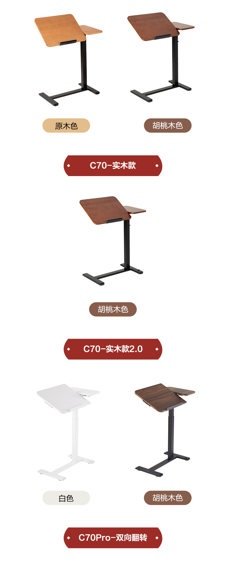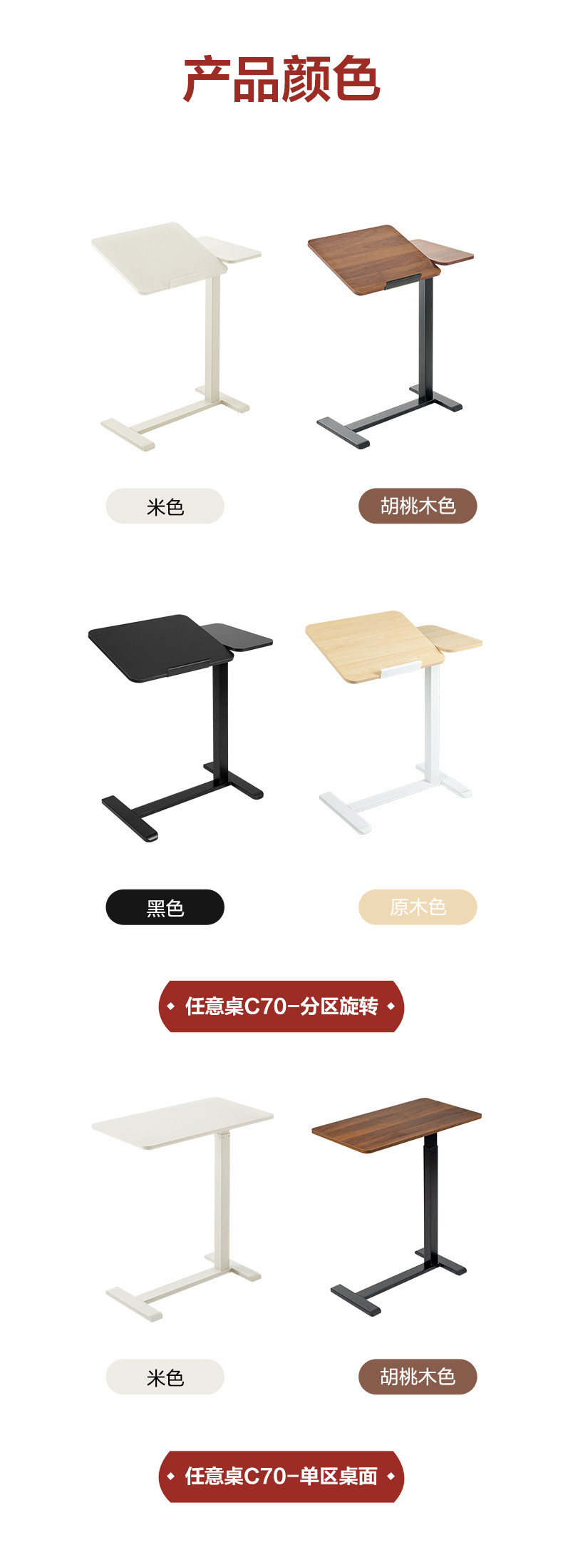 | Color | C70 [tablero de mesa giratoria fija] color nuez, C70 [tablero de mesa giratoria fija] color gris blanco, C70 [tablero de mesa giratoria neumática] color negro, modelo básico de mesa única blanco, modelo básico de mesa única color nuez |