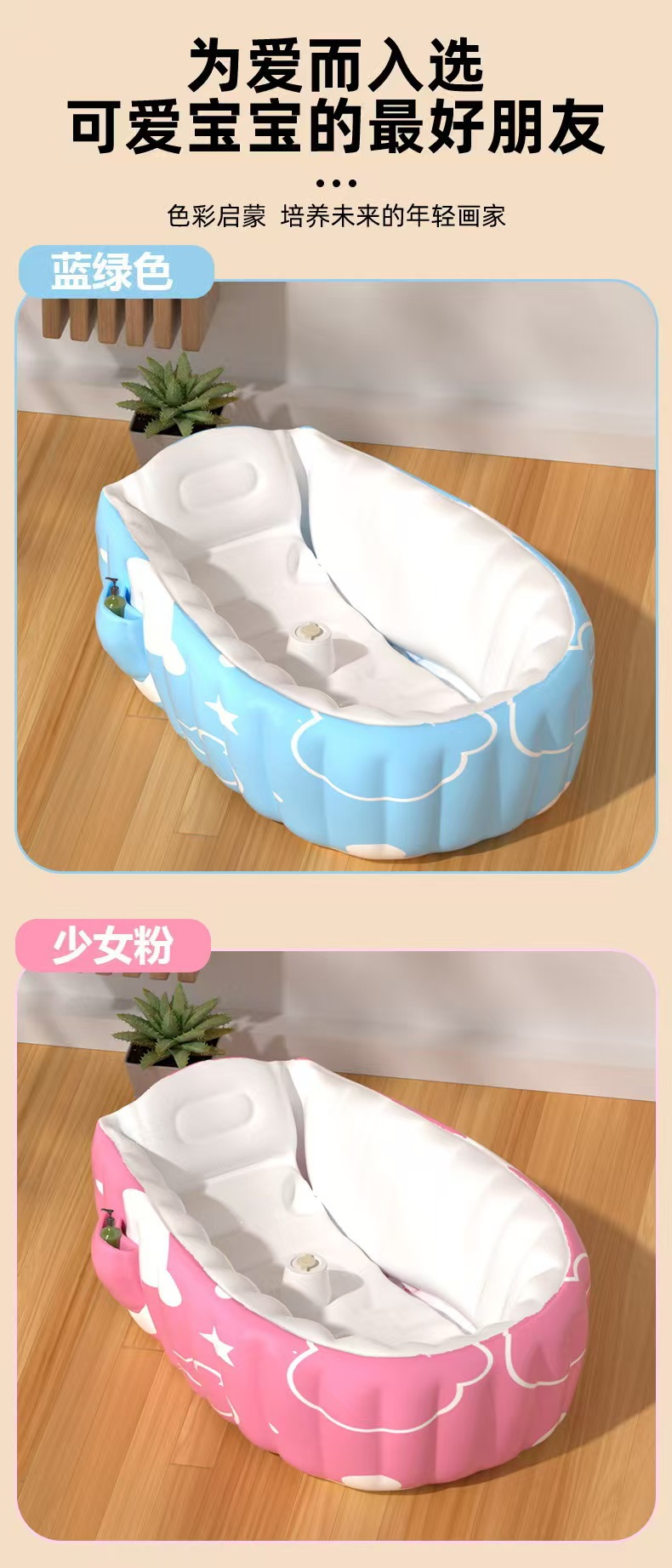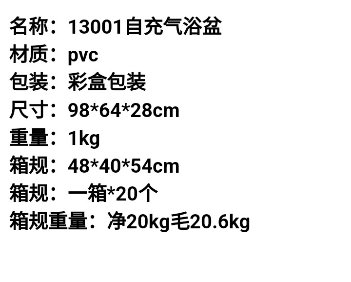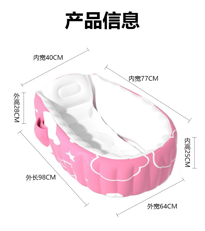 | Color | bañera normal rosa, bañera normal azul, bañera normal rosa + bomba de pies, bañera normal azul + bomba de pies, bañera autoinflable rosa, bañera autoinflable azul |