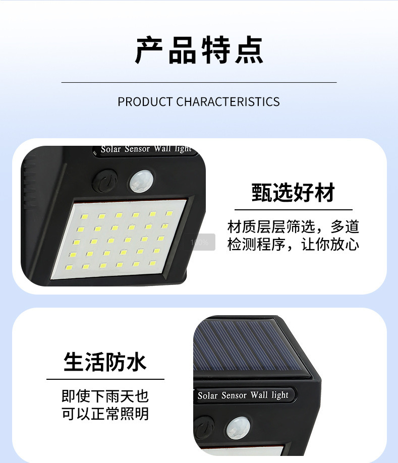 | Clasificación de especificaciones | 20LED en la oscuridad, iluminación automática, 30LED3 funciones, 48COB tres funciones, gemelas 40 lámparas, gemelas 96 lámparas, modelo dividido 20LED perlas, 40LED perlas de lámpara |