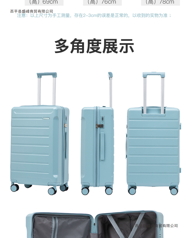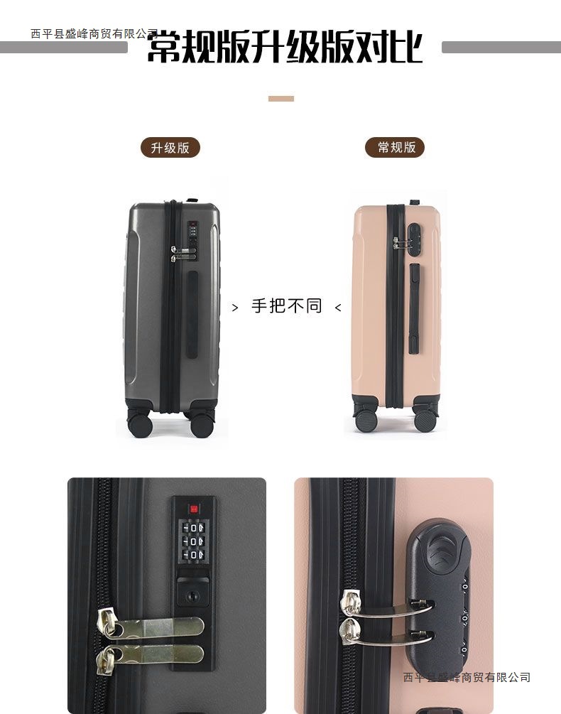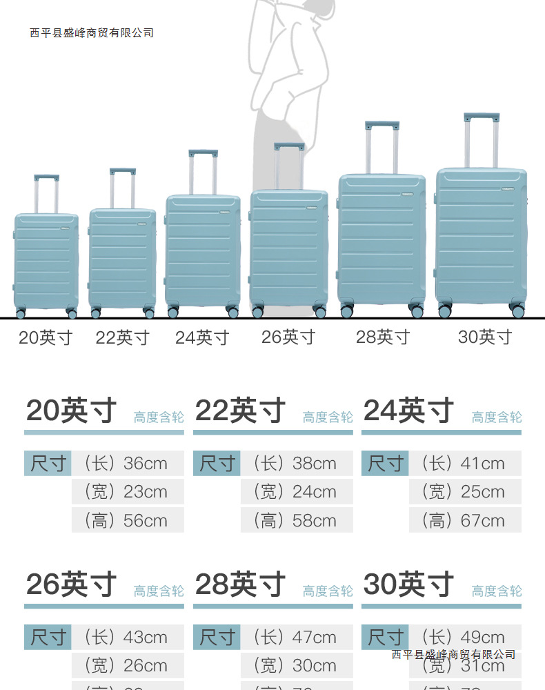 | Tamaño | 20 pulgadas [tamaño de embarque], 22 pulgadas [adecuado para viajes de negocios], 24 pulgadas [tamaño recomendado diario], 26 pulgadas [adecuado para viajes de larga distancia], 28 pulgadas [gran capacidad para viajes múltiples], 30 pulgadas [tamaño súper grande] |