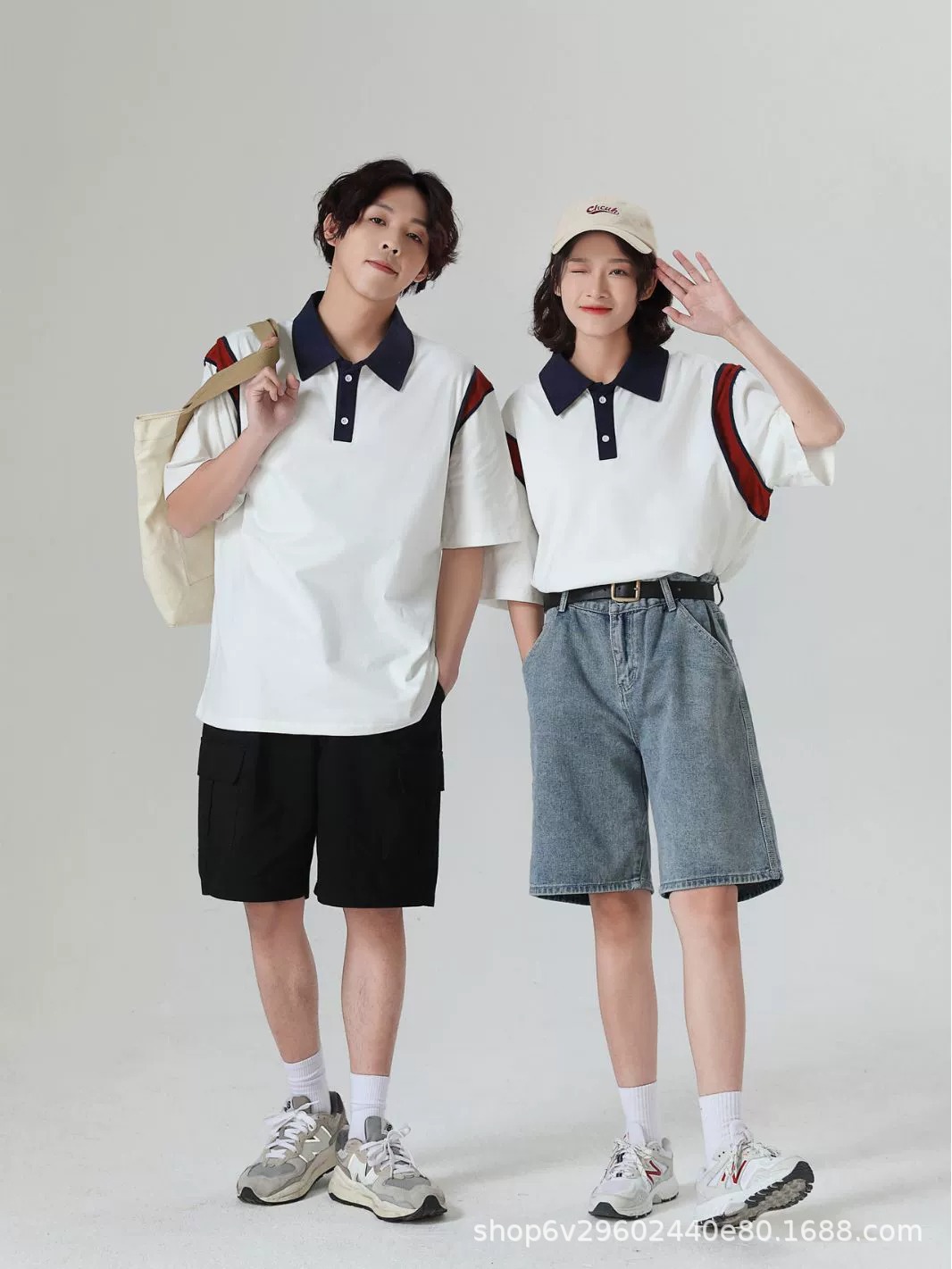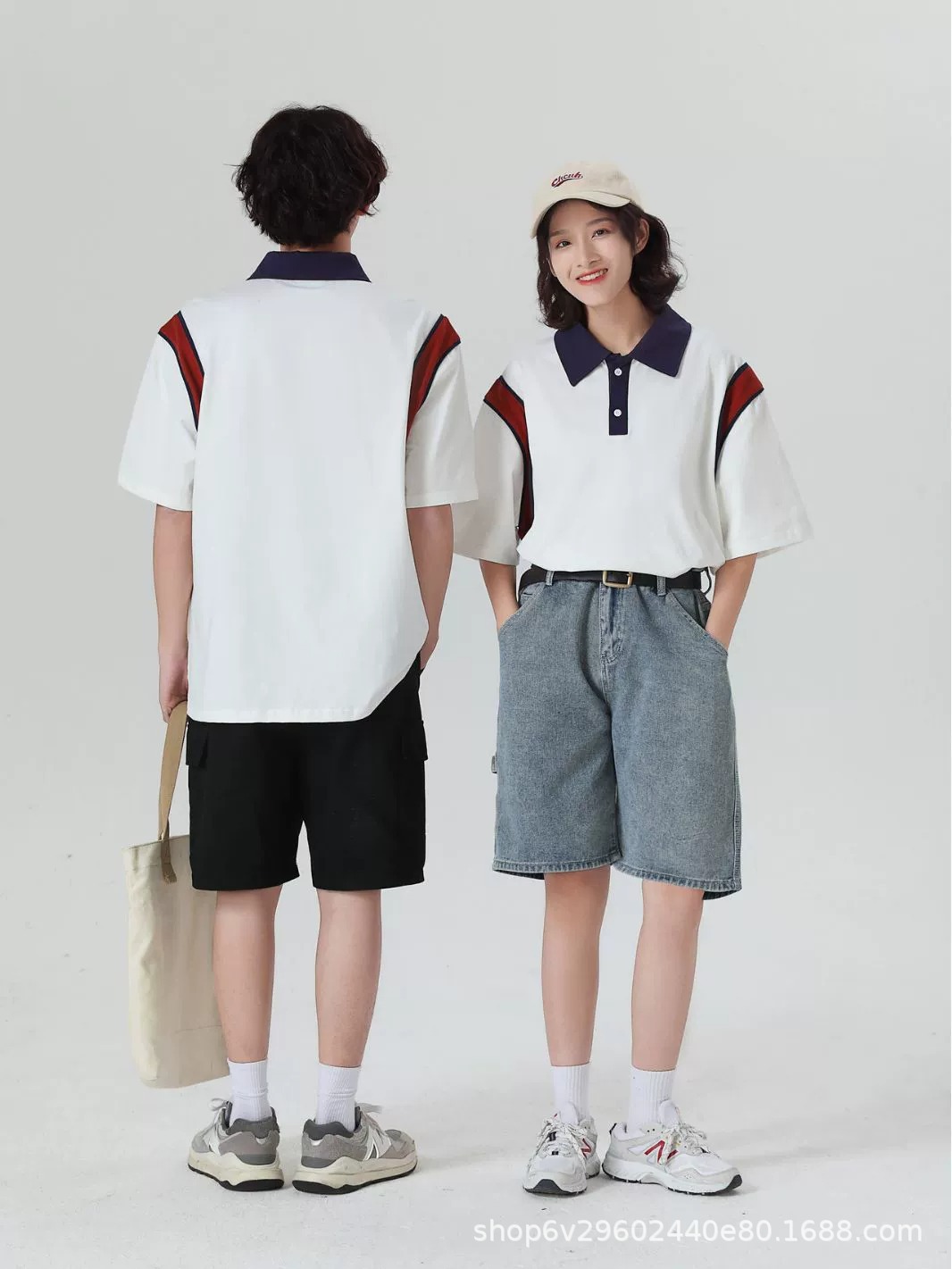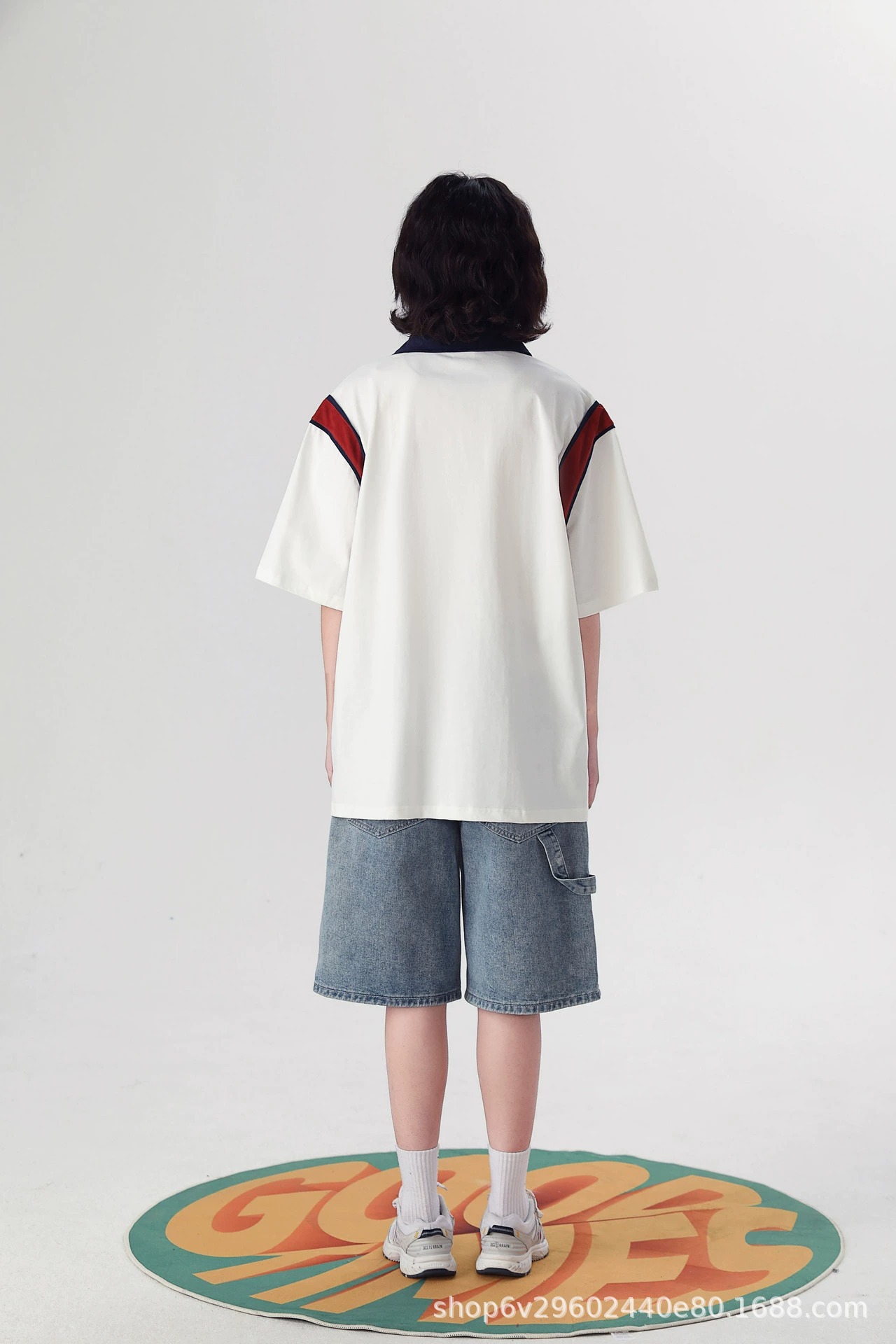 Camiseta Polo de Estilo Americano, Marca Británica de Moda, 100% Algodón, Hombros Caídos, Manga Corta, Unisex, Cuello Camisero, Holgada, Bloques de Color, Uniforme Escolar