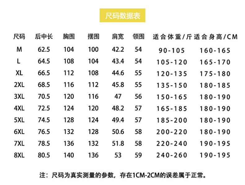 | Tamaño | M,L,XL,XXL,XXXL,4XL,5XL,6XL,7XL,8XL |