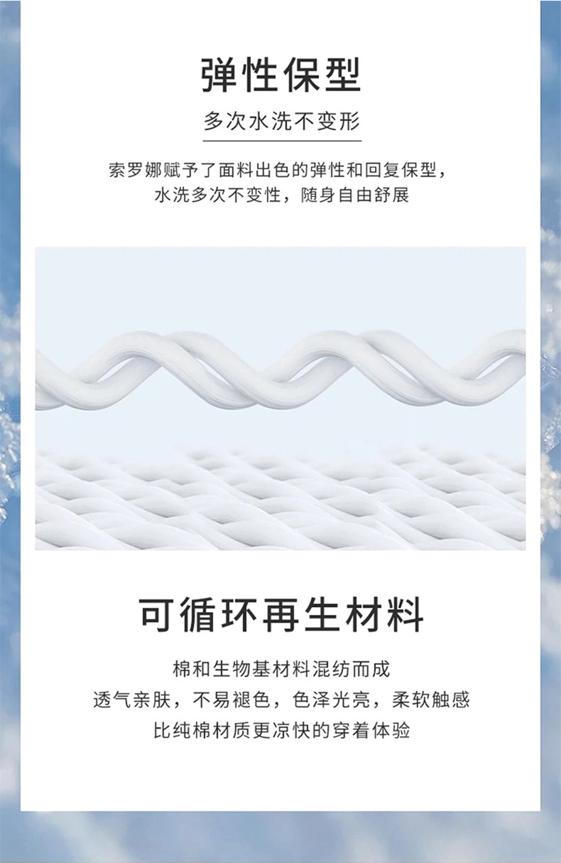| Función material | transpirable, lavable a máquina, resistente al desgaste, alta elasticidad, alta solidez del color, otros |
