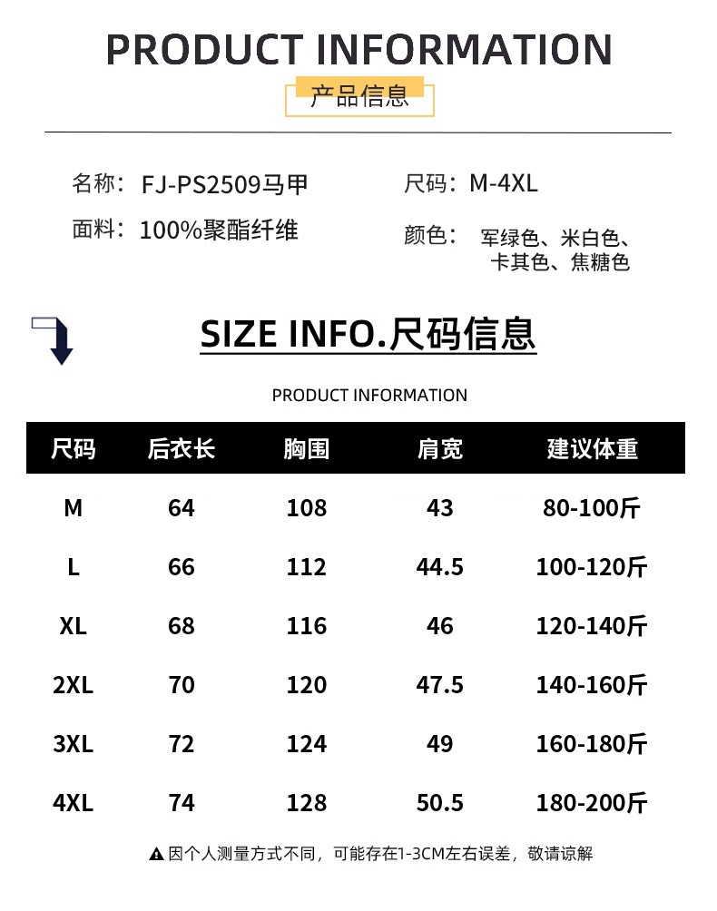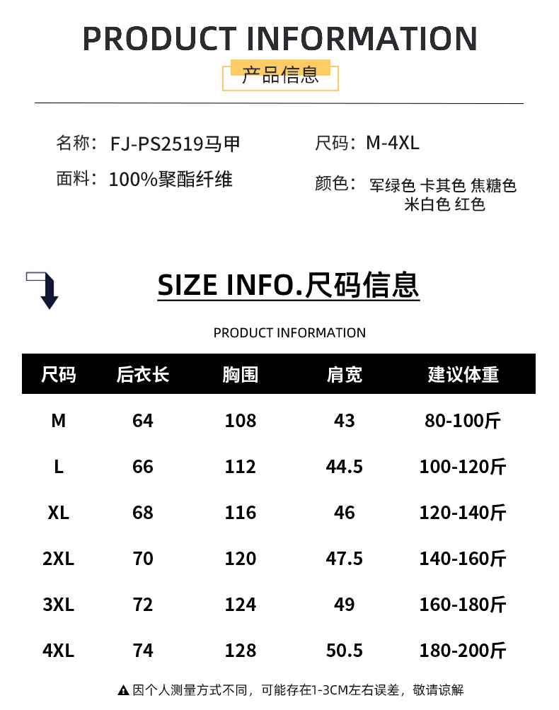 | Número de artículo | Chaleco FJ-PS2510 FJ-PS2509 FJ-PS2519 FJ-PG25066 |