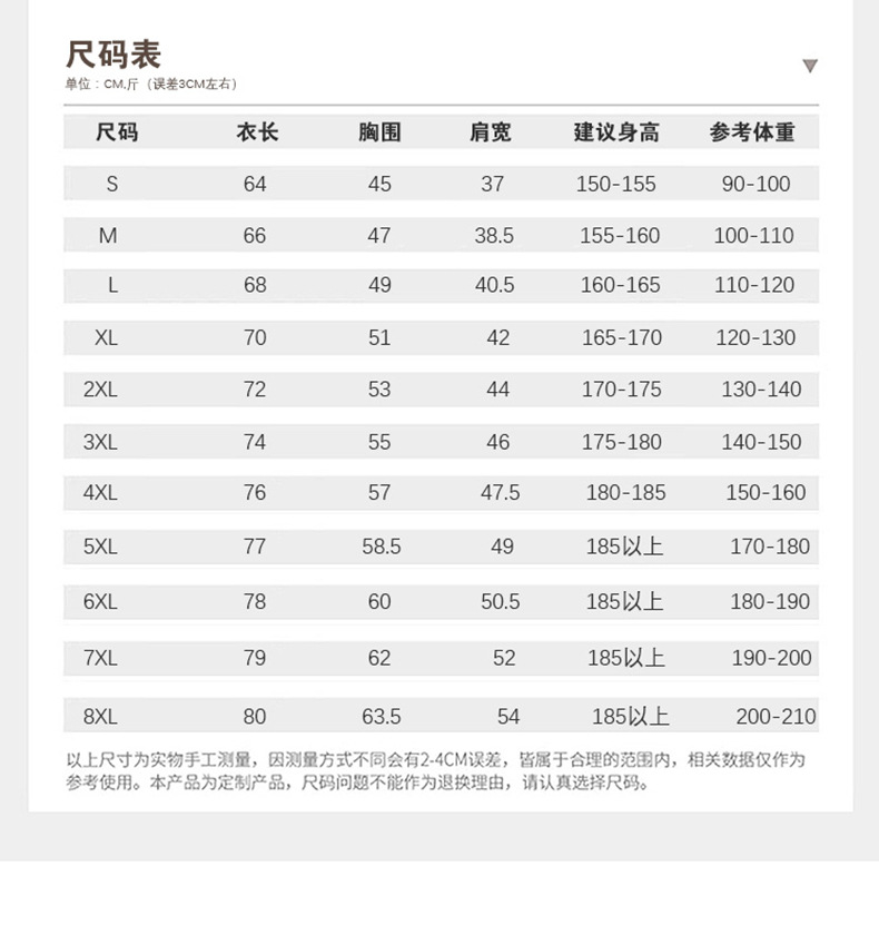 | Talla | S,M,L,XL,XXL,XXXL,4XL,5XL,6XL |