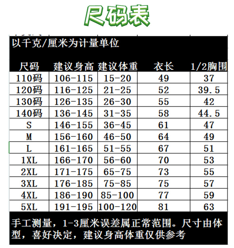 | Talla | S,M,L,XL,XXL,XXXL,XXXXL,5XL,110,120,130,140 |