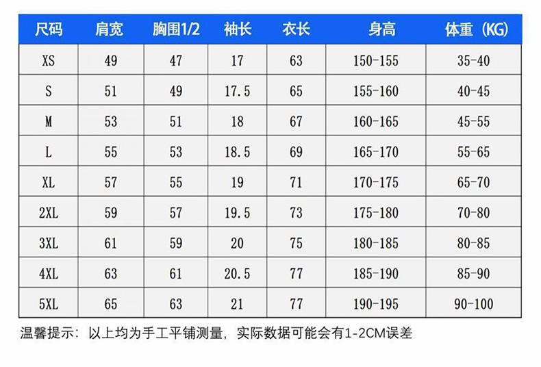 | Tamaño | XS,S,M,L,XL,XXL,XXXL,4XL,5XL |