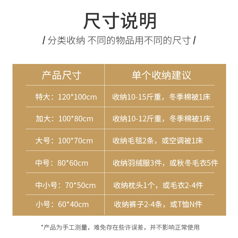 跨境真空收纳袋 大容量压缩袋 防尘防潮收纳 加厚衣物收纳 羽绒服防尘袋 加厚防潮收纳