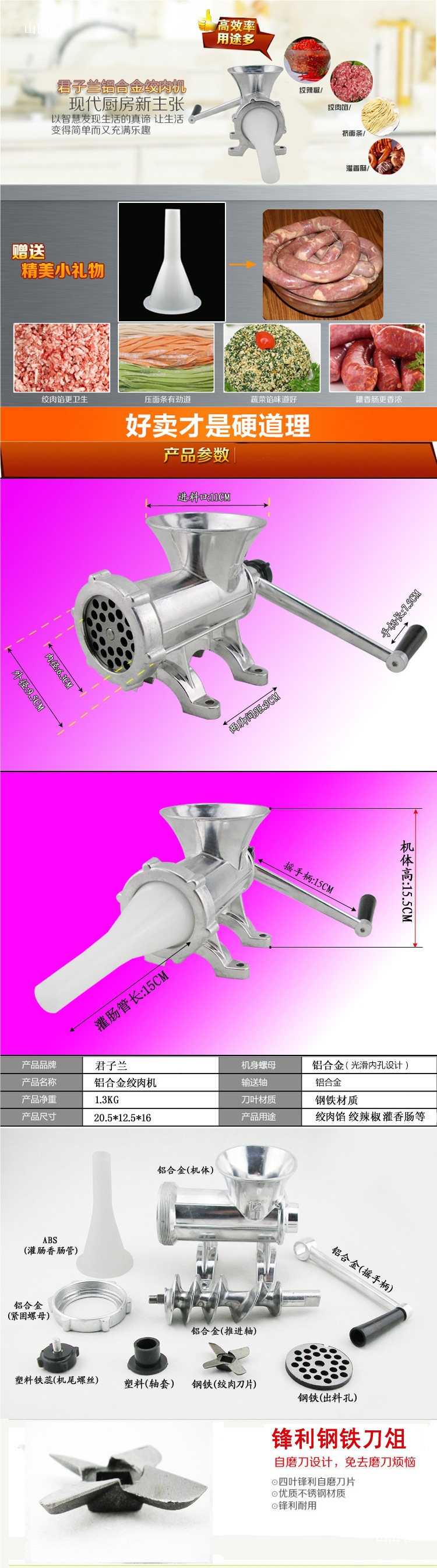No.12 molinillo de carne tipo 22 máquina de llenado de salchichas manual molinillo de carne doméstico molinillo de verduras de mano molinillo de salchichas molinillo de soja