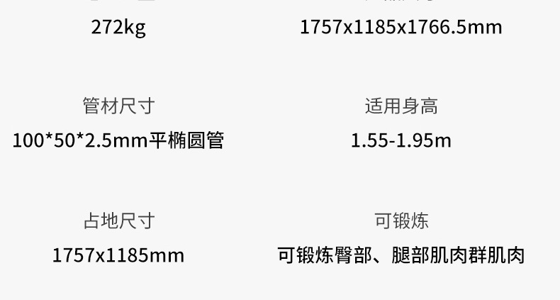 | Especificaciones | Entrenador de empuje F102 Hip |