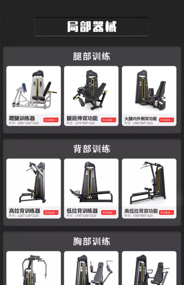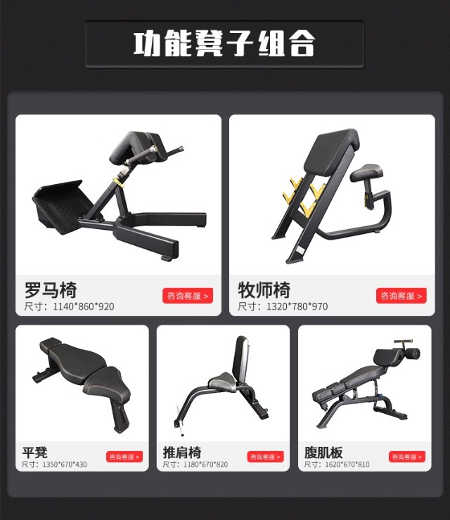 | Especificaciones | EM601 empuje de pecho sentado, EM602 bíceps rizado, EM603 piernas curvas horizontales, EM604 levantamiento de hombros sentado, EM605 pull-up, EM606 piernas curvas sentadas, EM607 pedal sentado, EM608 entrenador de hombros, EM609 entrenador de tracción baja, EM610 entrenador de tracción alta, EM611 entrenador anti-pájaro, EM612 entrenador de piernas extendidas, EM613 remo de espalda, EM614 muslo interno y lateral doble en uno, EM615 muslo interno, EM616 muslo externo, EM617 alto-bajo pullback 2 - en - 1, EM618 pantorrilla sentada, EM619 piernas extendidas 2 - en - 1, EM620 pecho empujado 2 - en - 1, EM621 pull-down fijo, EM622 tríceps extensión, EM623 entrenador de piernas horizontales, EM624 estiramiento de espalda, EM625 entrenador de cadera, EM626 abdomen rizado, EM627 pantorrilla de pie |