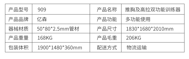 | Especificaciones | EM911 entrenador de remo de transferencia, EM914 entrenador de remo de transferencia, EM973 entrenador de empuje de cadera, EM999 marco de entrenamiento de cuclillas de tiburón, F901 entrenador de empuje de pecho de transferencia, F902 entrenador de empuje de pecho de transferencia horizontal, F903 entrenador de empuje de pecho de ángulo ancho de transferencia, F904 entrenador de remo de transferencia de ángulo ancho de transferencia, F905 entrenador de empuje de pecho de transferencia inclinado hacia arriba (manilla horizontal), F906 entrenador de empuje de pecho de transferencia inclinado hacia abajo, F907 entrenador de empuje de pecho superior inclinado tipo transferencia, F908 entrenador de empuje de hombros tipo transferencia, F909 entrenador de empuje de pecho tipo transferencia y músculo de espalda alta, F910 entrenador de espalda alta tipo transferencia delantero |