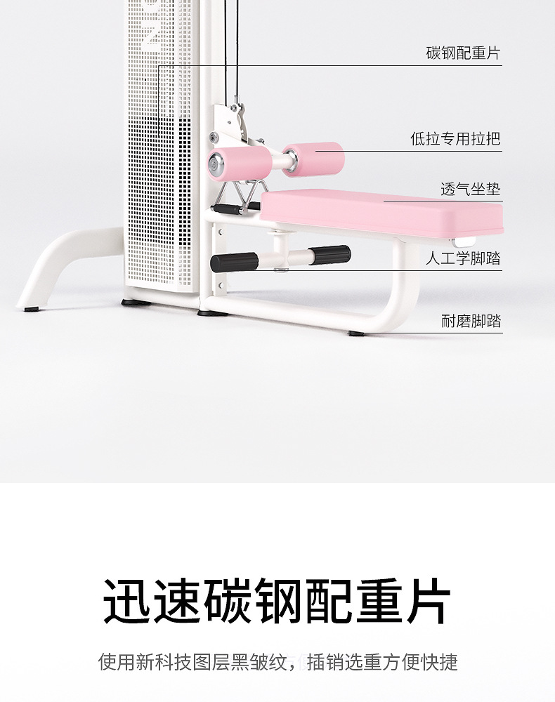 | Especificaciones | Entrenador de tracción alta y baja, Entrenador de máquina de puente de cadera, Máquina de sentadillas Hacker comercial, Máquina de sentadillas Hacker doméstica, Entrenador de tracción alta y baja doble en uno, Entrenador de tracción alta y baja doble en uno, Entrenador de muslo interno y externo, Entrenador de muslo interno y externo doble en uno |