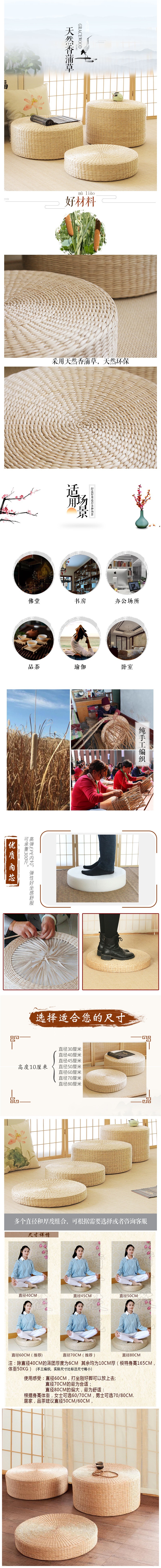 | Tamaño | 30 cm de diámetro (tamaño para niños pequeños), 40 cm de diámetro (tamaño pequeño para el hogar), 45 cm de diámetro (tamaño medio para el hogar), 50 cm de diámetro (tamaño grande para el hogar), 60 cm de diámetro (tamaño de meditación, recomendado para mujeres, 70 cm de diámetro (tamaño de meditación, recomendado para hombres, 80 cm de diámetro (tamaño de meditación, recomendado para profesores) |