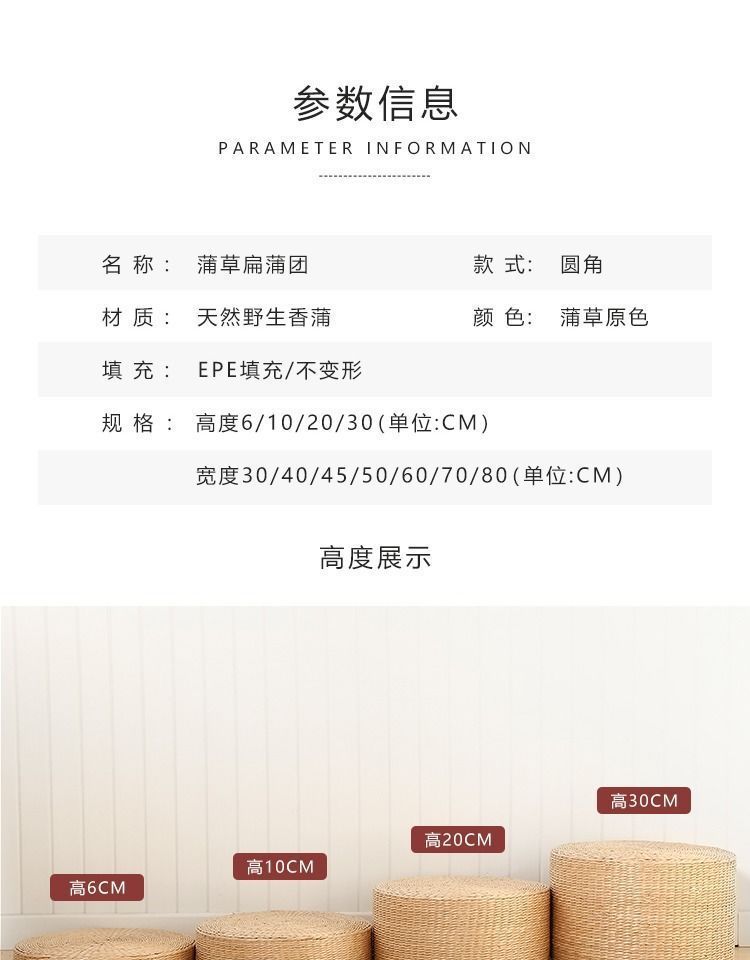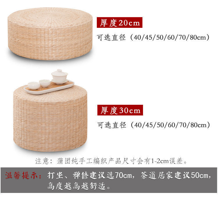 | Tamaño | 30cm (tipo de jardín de infantes), 40cm (tipo de estudiantes para adultos es pequeño), 45cm (tipo de adultos para el hogar es bueno), 50cm (tipo de adultos grande se vende bien), 60cm (tipo de meditación de yoga para mujeres de cultivo físico), 70cm (tipo de meditación de yoga para hombres de cultivo físico), 80cm (tipo de capital más grande, más cómodo y mejor estiramiento) |