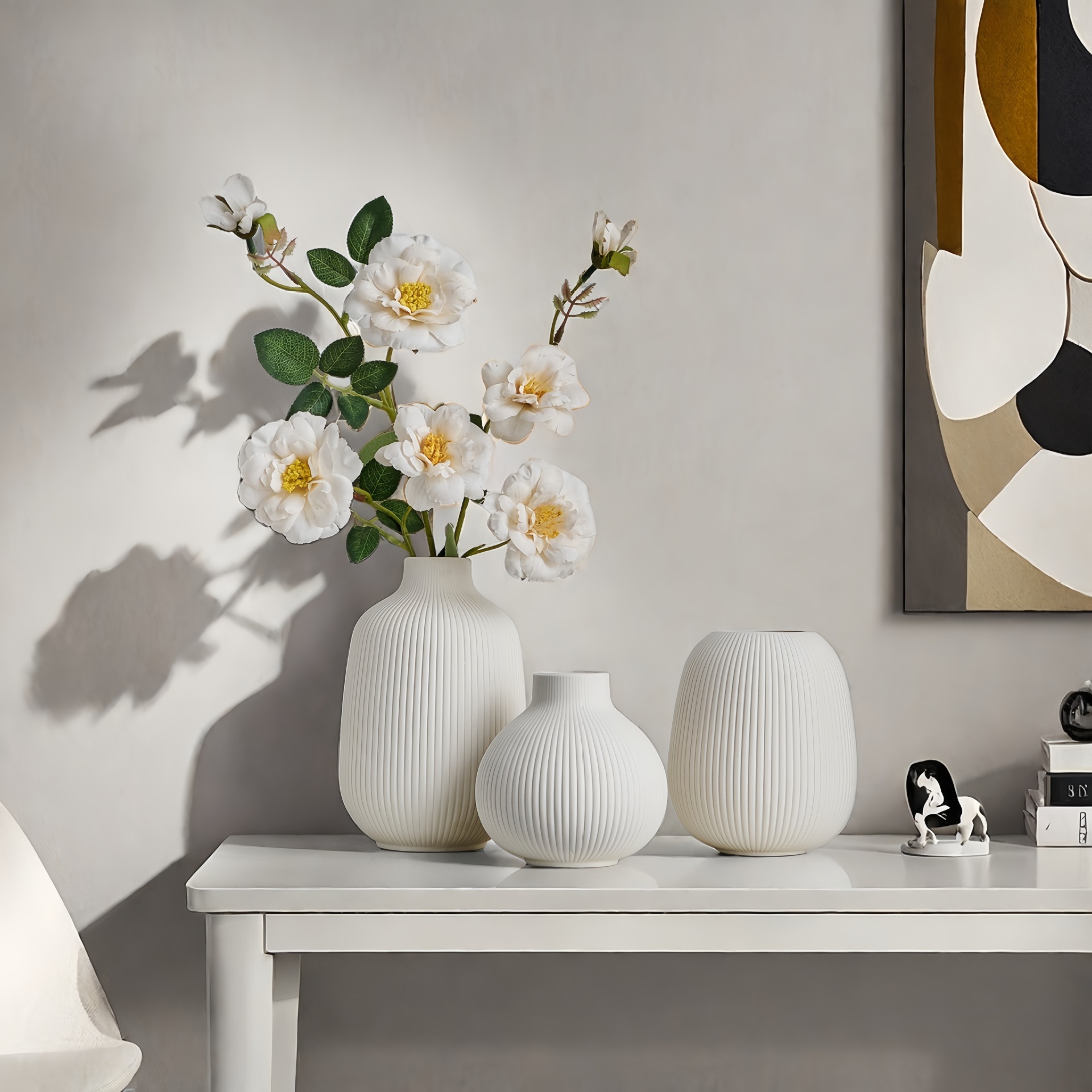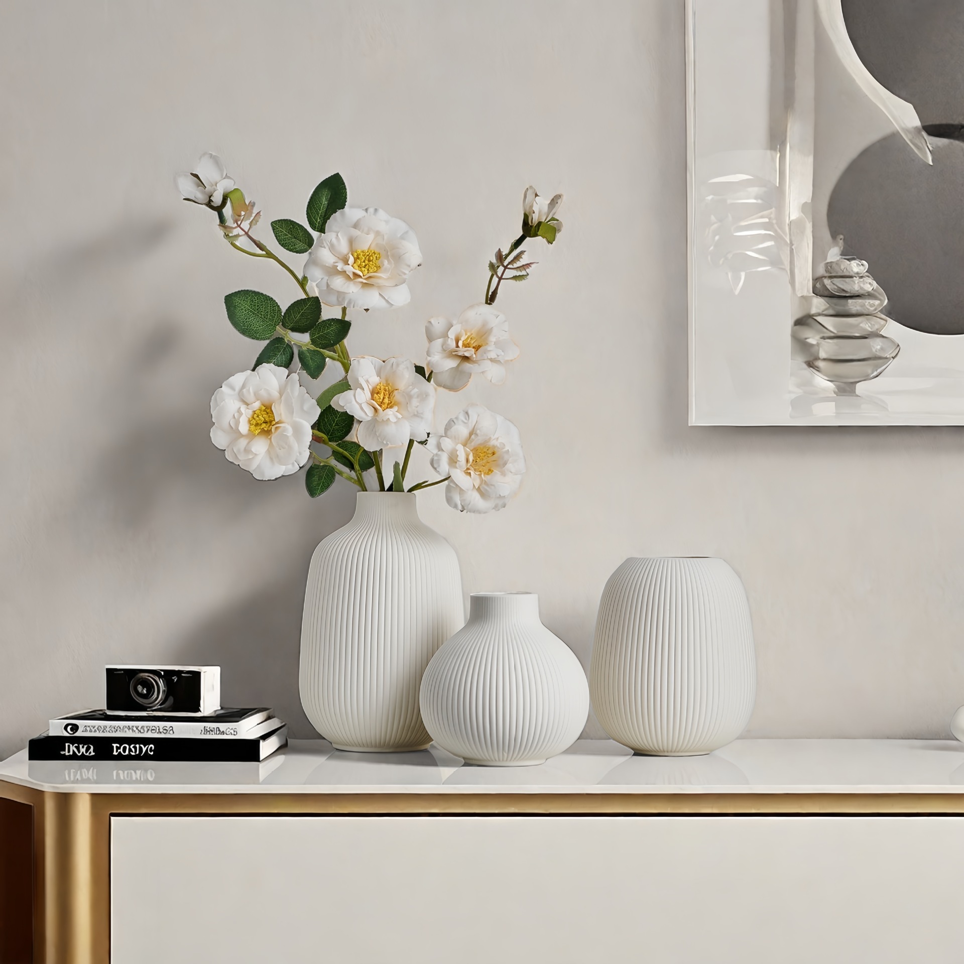 | Número de artículo | Vasco de cerámica blanca con filamento de tres piezas |