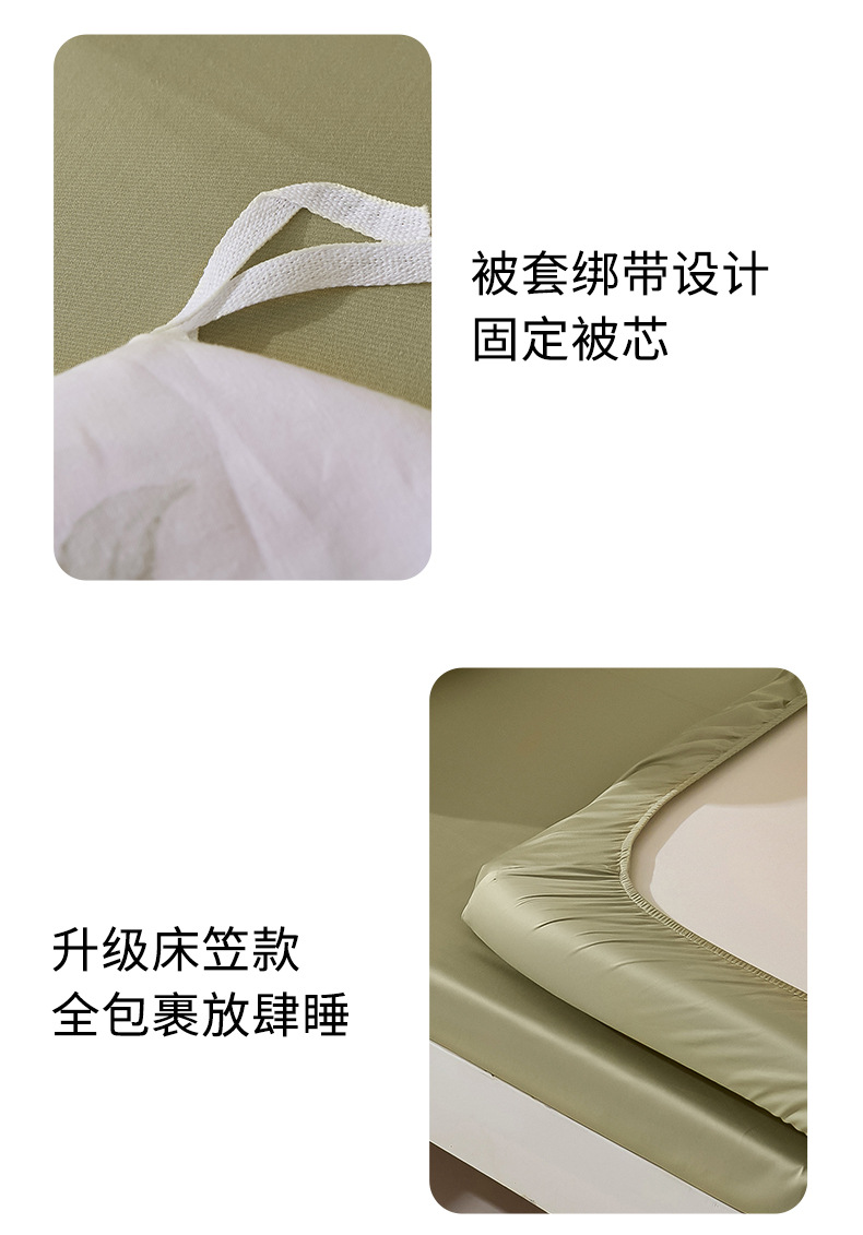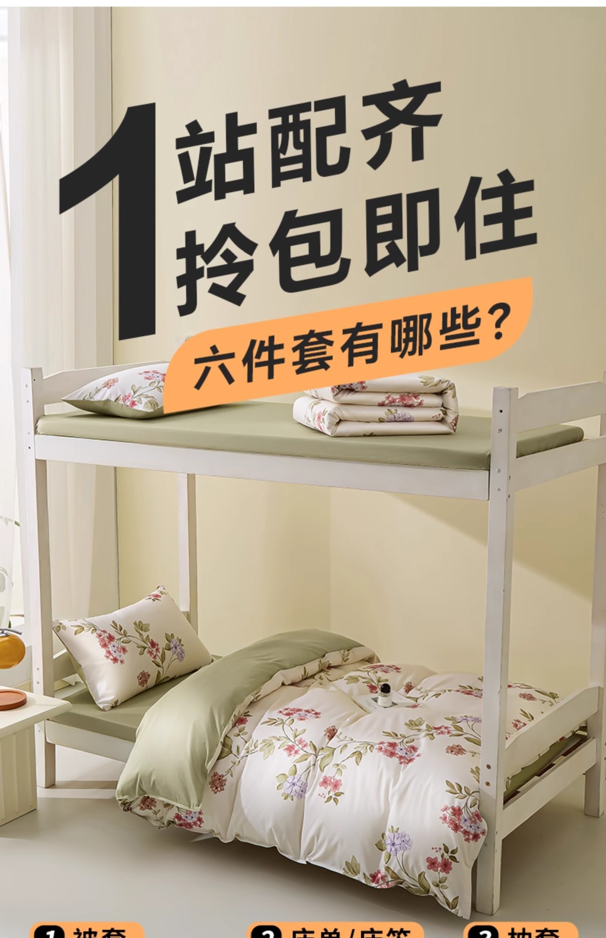 | Especificaciones de tamaño | 床单款:0.9床三件套(被套150x200+床单150x220+枕套),床单款:0.9床春秋丝绵五件套(床单三件套+枕芯+3斤大豆被),床单款:0.9床秋冬丝绵五件套(床单三件套+枕芯+5斤大豆被),床单款:0.9床春秋棉花五件套(床单三件套+枕芯+3斤棉花被),床单款:0.9床秋冬棉花五件套(床单三件套+枕芯+5斤棉花被),床单款:0.9床春秋丝绵六件套(床单三件套+枕芯+3斤大豆被+加厚床垫),床单款:0.9床秋冬丝绵六件套(床单三件套+枕芯+5斤大豆被+加厚床垫),床单款:0.9床春秋棉花六件套(床单三件套+枕芯+3斤棉花被+加厚床垫),床单款:0.9床秋冬棉花六件套(床单三件套+枕芯+5斤棉花被+加厚床垫),床笠款:0.9床三件套(被套150x200+床笠90x190+枕套),床笠款:0.9床春秋丝绵五件套(床笠三件套+枕芯+3斤大豆被),床笠款:0.9床秋冬丝绵五件套(床笠三件套+枕芯+5斤大豆被),床笠款:0.9床春秋棉花五件套(床笠三件套+枕芯+3斤棉花被),床笠款:0.9床秋冬棉花五件套(床笠三件套+枕芯+5斤棉花被),床笠款:0.9床春秋丝绵六件套(床笠三件套+枕芯+3斤大豆被+加厚床垫),床笠款:0.9床秋冬丝绵六件套(床笠三件套+枕芯+5斤大豆被+加厚床垫),床笠款:0.9床春秋棉花六件套(床笠三件套+枕芯+3斤棉花被+加厚床垫),床笠款:0.9床秋冬棉花六件套(床笠三件套+枕芯+5斤棉花被+加厚床垫),床单款:1.2床三件套(被套150x200+床单150x220+枕套),床单款:1.2床春秋丝绵五件套(床单三件套+枕芯+3斤大豆被),床单款:1.2床秋冬丝绵五件套(床单三件套+枕芯+5斤大豆被),床单款:1.2床春秋棉花五件套(床单三件套+枕芯+3斤棉花被),床单款:1.2床春秋棉花五件套(床单三件套+枕芯+5斤棉花被),床单款:1.2床春秋丝绵六件套(床单三件套+枕芯+3斤大豆被+加厚床垫),床单款:1.2床秋冬丝绵六件套(床单三件套+枕芯+5斤大豆被+加厚床垫),床单款:1.2床春秋棉花六件套(床单三件套+枕芯+3斤棉花被+加厚床垫),床单款:1.2床秋冬棉花六件套(床单三件套+枕芯+5斤棉花被+加厚床垫),床笠款:1.2床三件套(被套150x200+床笠120x200+枕套),床笠款:1.2床春秋丝绵五件套(床笠三件套+枕芯+3斤大豆被),床笠款:1.2床秋冬丝绵五件套(床笠三件套+枕芯+5斤大豆被),床笠款:1.2床春秋棉花五件套(床笠三件套+枕芯+3斤棉花被),床笠款:1.2床秋冬棉花五件套(床笠三件套+枕芯+5斤棉花被),床笠款:1.2床春秋丝绵六件套(床笠三件套+枕芯+3斤大豆被+加厚床垫),床笠款:1.2床秋冬丝绵六件套(床笠三件套+枕芯+5斤大豆被+加厚床垫) |