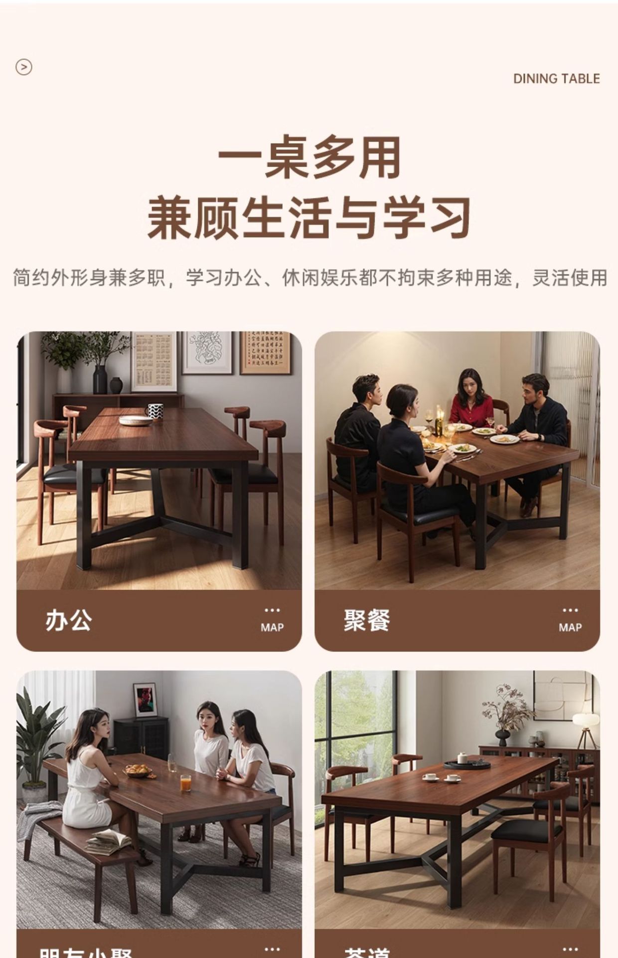 Mesa de comedor rectangular, restaurante de barbacoa de estilo industrial, restaurante comercial, mesa de comedor pequeña, tienda de fideos, combinación de mesa y silla especiales para taberna