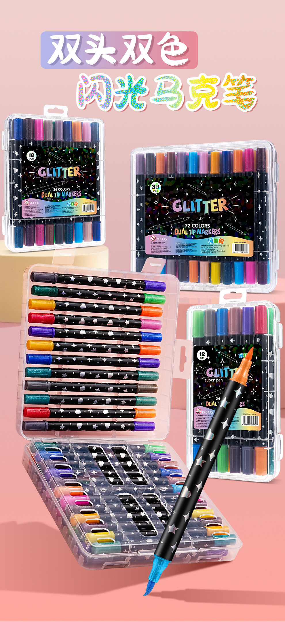 Ventas transfronterizas de tinta caliente de doble cabeza de doble color flash marcador de arte ultra-brillante pintura graffiti acuarela
