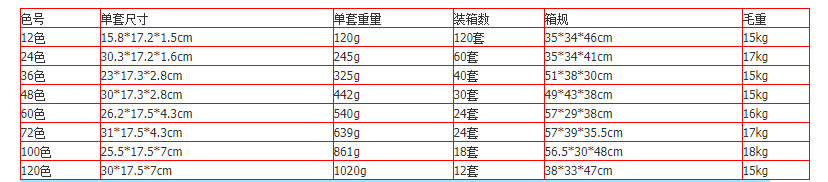 | Color | barra blanca de 12 colores de dos cabezas [cabeza suave + línea de gancho], barra negra de 12 colores de dos cabezas [cabeza suave + línea de gancho], barra blanca de 24 colores de dos cabezas [cabeza suave + línea de gancho], barra negra de 24 colores de dos cabezas [cabeza suave + línea de gancho], barra blanca de 36 colores de dos cabezas [cabeza suave + línea de gancho], barra negra de 36 colores de dos cabezas [cabeza suave + línea de gancho], barra blanca de 48 colores de dos cabezas [cabeza suave + línea de gancho], barra negra de 48 colores de dos cabezas [cabeza suave + línea de gancho], Barra blanca de 60 colores de doble cabeza [cabeza suave + línea de gancho], barra negra de 60 colores de doble cabeza [cabeza suave + línea de gancho], barra blanca de 80 colores de doble cabeza [cabeza suave + línea de gancho], barra negra de 72 colores de doble cabeza [cabeza suave + línea de gancho], barra blanca de 100 colores de doble cabeza [cabeza suave + línea de gancho], barra negra de 100 colores de doble cabeza [cabeza suave + línea de gancho], barra blanca de 120 colores de doble cabeza [cabeza suave + línea de gancho], barra negra de 120 colores de doble cabeza [cabeza suave + línea de gancho] |