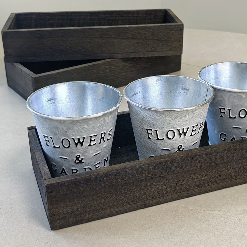 Conjunto de macetas Retro Amarillo, caja de madera separada Amarillo