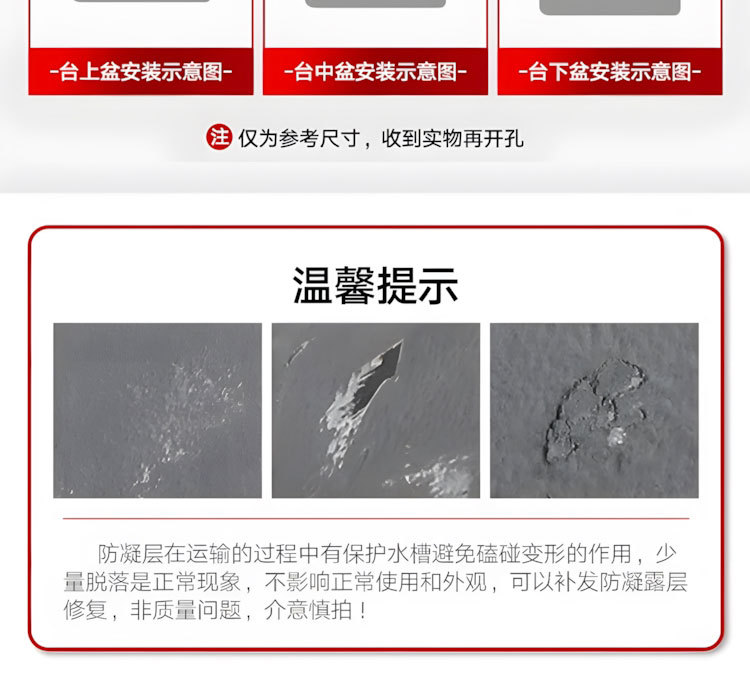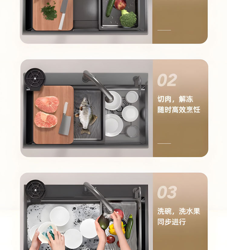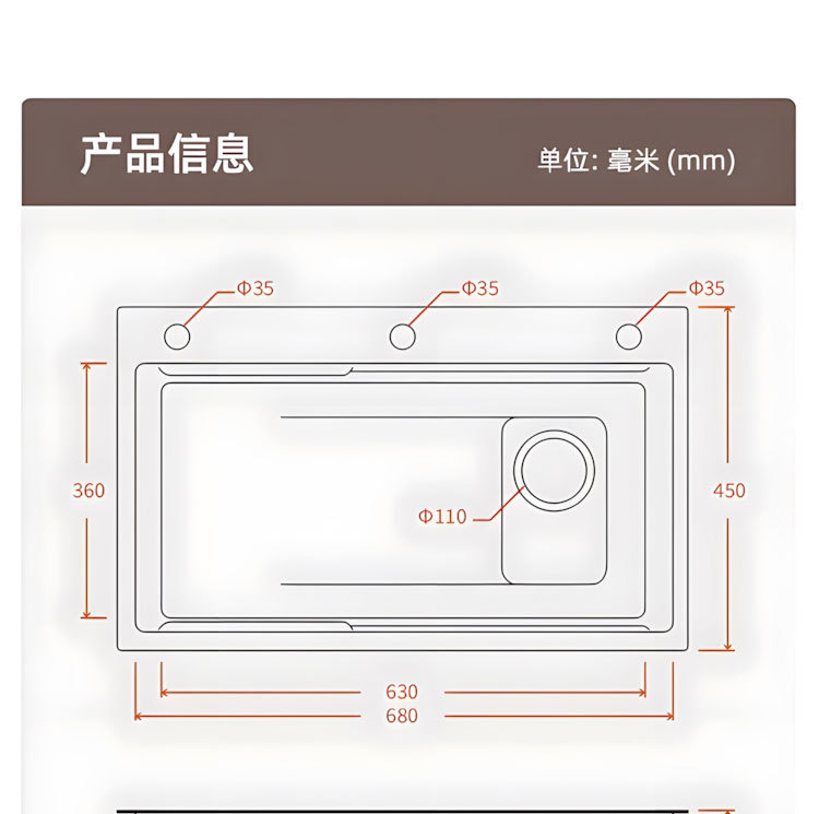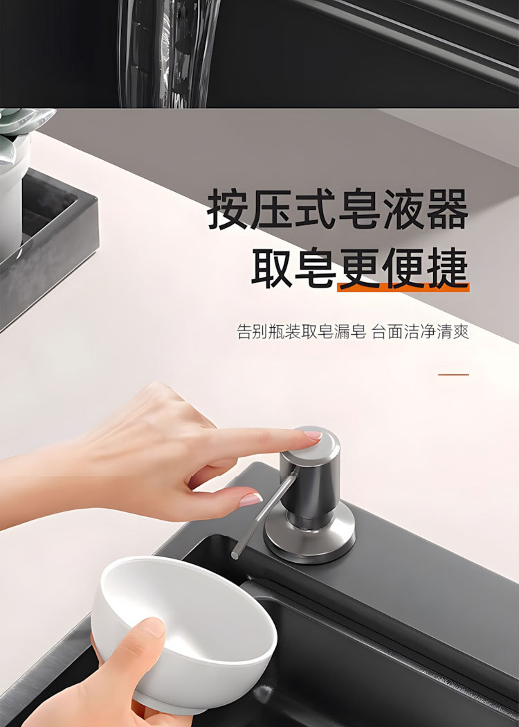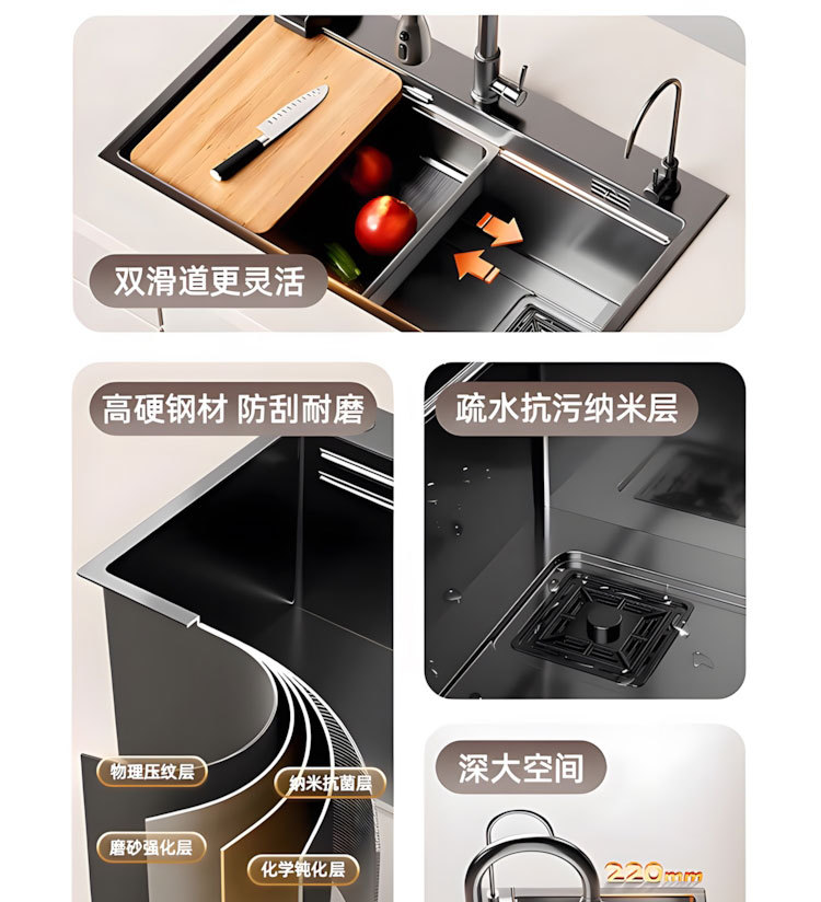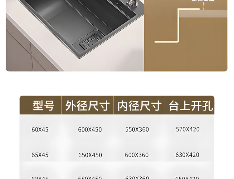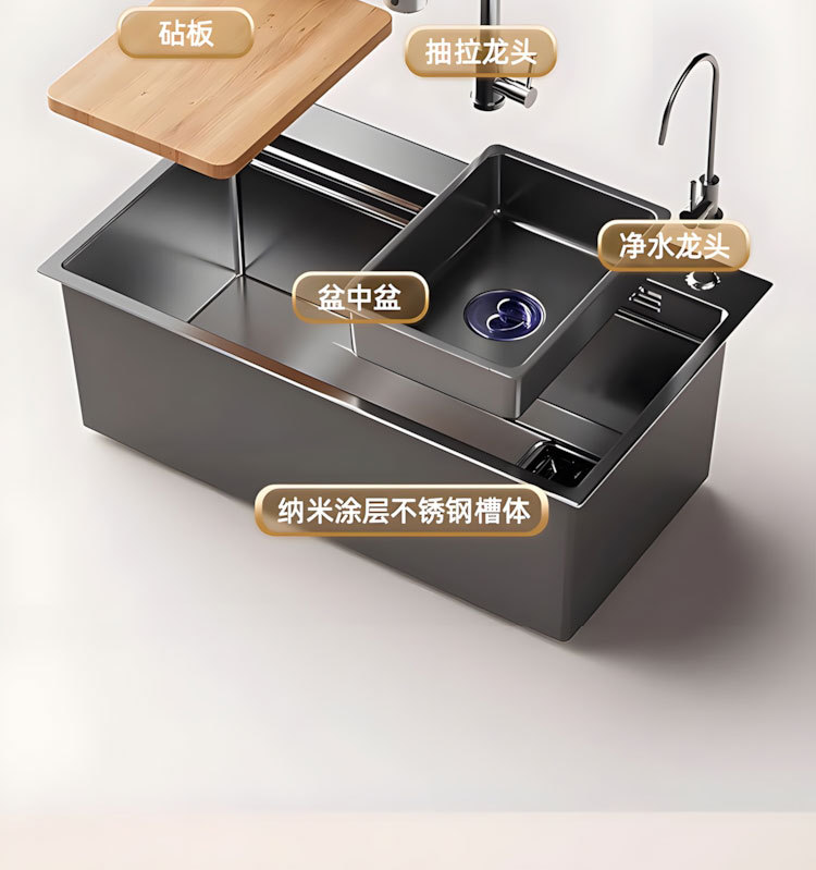 | Tamaño exterior | 【加厚款米粒飞雨槽 】68x45cm丨三挡抽拉龙头丨洗杯器丨净水龙头丨盆中盆丨皂液器【加厚4.0款】,【加厚款米粒飞雨槽 】75x45cm丨三挡抽拉龙头丨洗杯器丨净水龙头丨盆中盆丨皂液器【加厚4.0款】,【加厚款米粒飞雨槽 】80x45cm丨三挡抽拉龙头丨洗杯器丨净水龙头丨盆中盆丨皂液器【加厚4.0款】,60*45【纳米水槽+盆中盆+下水器+皂液器】,60*45【圆形龙头+盆中盆+菜板+下水器+皂液器+角阀】,60*45【三档抽拉龙头+盆中盆+菜板+下水器++净水龙头+皂液器+角阀】,60*45【三档抽拉龙头+盆中盆+菜板+下水器+皂液器+洗杯器+角阀】,60*45【三档抽拉龙头+盆中盆+菜板+台控下水器+洗杯器+角阀】,60*45【三档抽拉龙头+盆中盆+菜板+下水器+净水龙头+洗杯器+角阀】,68*45【纳米水槽+盆中盆+下水器+皂液器】,68*45【圆形龙头+盆中盆+菜板+下水器+皂液器+角阀】,68*45【三档抽拉龙头+盆中盆+菜板+下水器+皂液器+净水龙头+角阀】,68*45【三档抽拉龙头+盆中盆+菜板+下水器+皂液器+洗杯器+角阀】,68*45【三档抽拉龙头+盆中盆+菜板+下水器+净水龙头+洗杯器+角阀】,68*45【三档抽拉龙头+盆中盆+菜板+下水器+台控下水器+洗杯器+角阀】,75*45【纳米水槽+盆中盆+下水器+皂液器】,75*45【圆形龙头+盆中盆+菜板+下水器+皂液器+角阀】,75*45【三档抽拉龙头+盆中盆+菜板+下水器+皂液器+净水龙头+角阀】,75*45【三档抽拉龙头+盆中盆+菜板+下水器+皂液器+洗杯器+角阀】,75*45【三档抽拉龙头+盆中盆+菜板+下水器+净水龙头+洗杯器+角阀】,75*45【三档抽拉龙头+盆中盆+菜板+台控下水器+洗杯器+角阀】,80*45【纳米水槽+盆中盆+下水器+皂液器】,80*45【圆形龙头+盆中盆+菜板+下水器+皂液器+角阀】,80*45【三档抽拉龙头+盆中盆+菜板+下水器+皂液器++净水龙头+角阀】,80*45【三档抽拉龙头+盆中盆+菜板+下水器+皂液器+洗杯器+角阀】,80*45【三档抽拉龙头+盆中盆+菜板+下水器+净水龙头+洗杯器+角阀】,80*45【三档抽拉龙头+盆中盆+菜板+台控下水器+洗杯器+角阀】 |