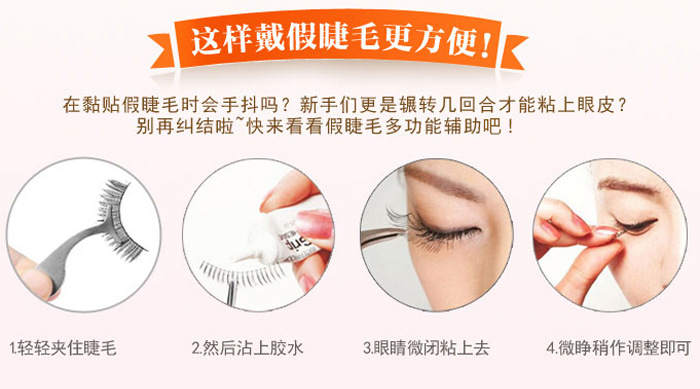 Aplicador y pinzas para pestañas postizas, de plástico multifunción