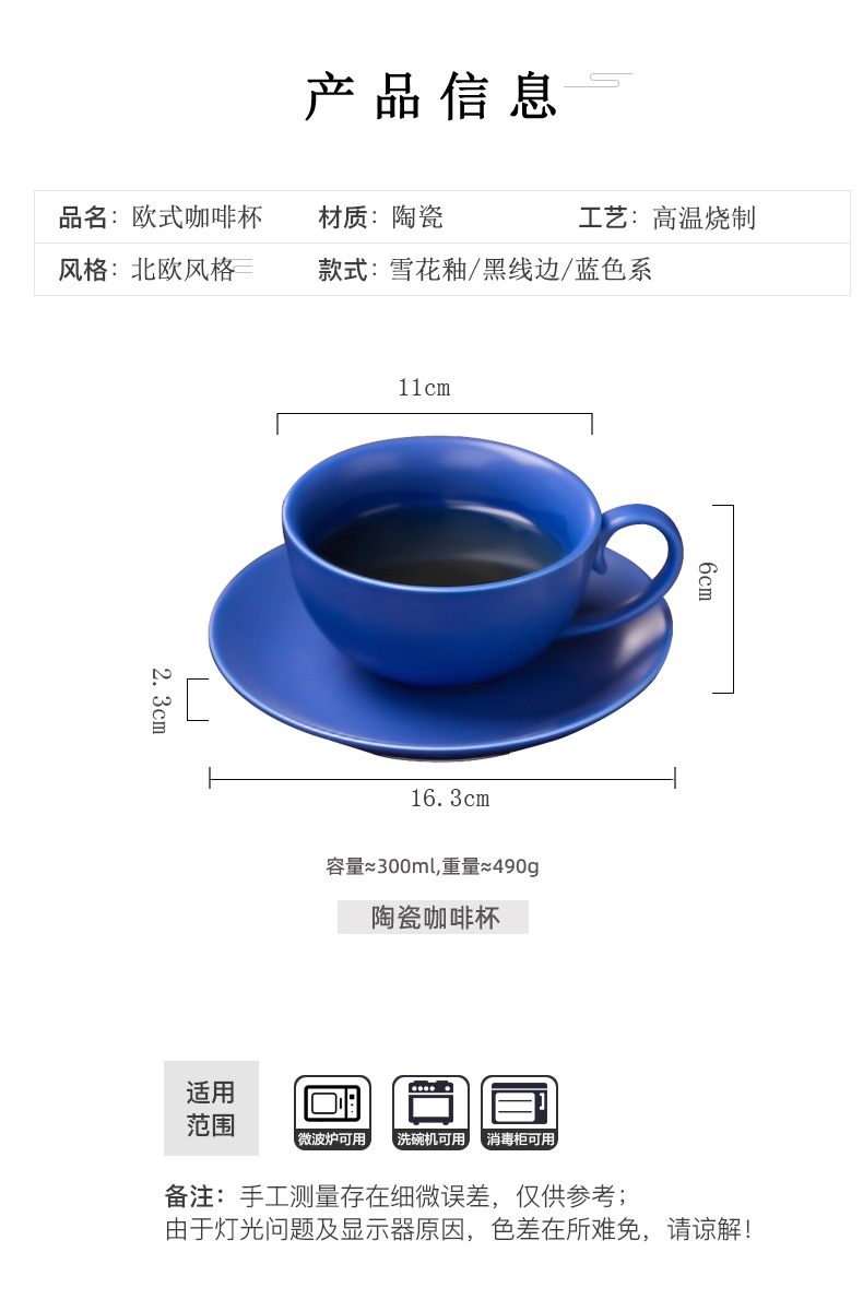 Taza de café de cerámica de Dehua Klein Azul Cappuccinola estilo europeo Taza de café simple estilo nórdico