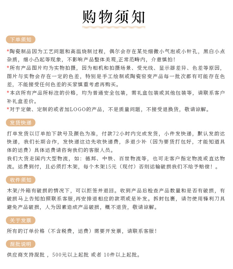 3:下单无金额限制,产品一箱起批,支持混批,敬请谅解。