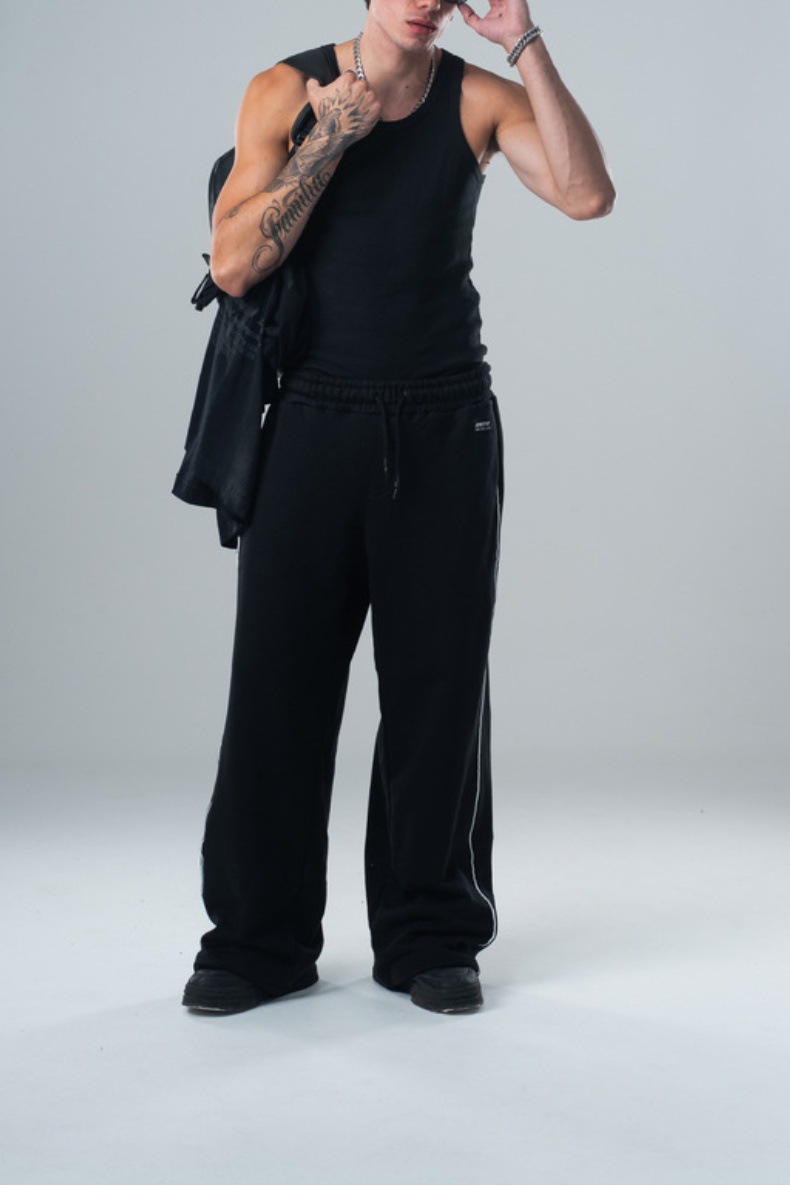 Pantalones deportivos casuales versátiles de pierna recta para otoño e invierno 2025, pantalones holgados retro de moda con costuras laterales de patchwork para hombre.